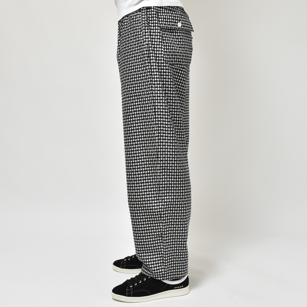 balcone別注 シルクカシミアギンガムチェックシャーリングワイドテーパードパンツ M021335-C
