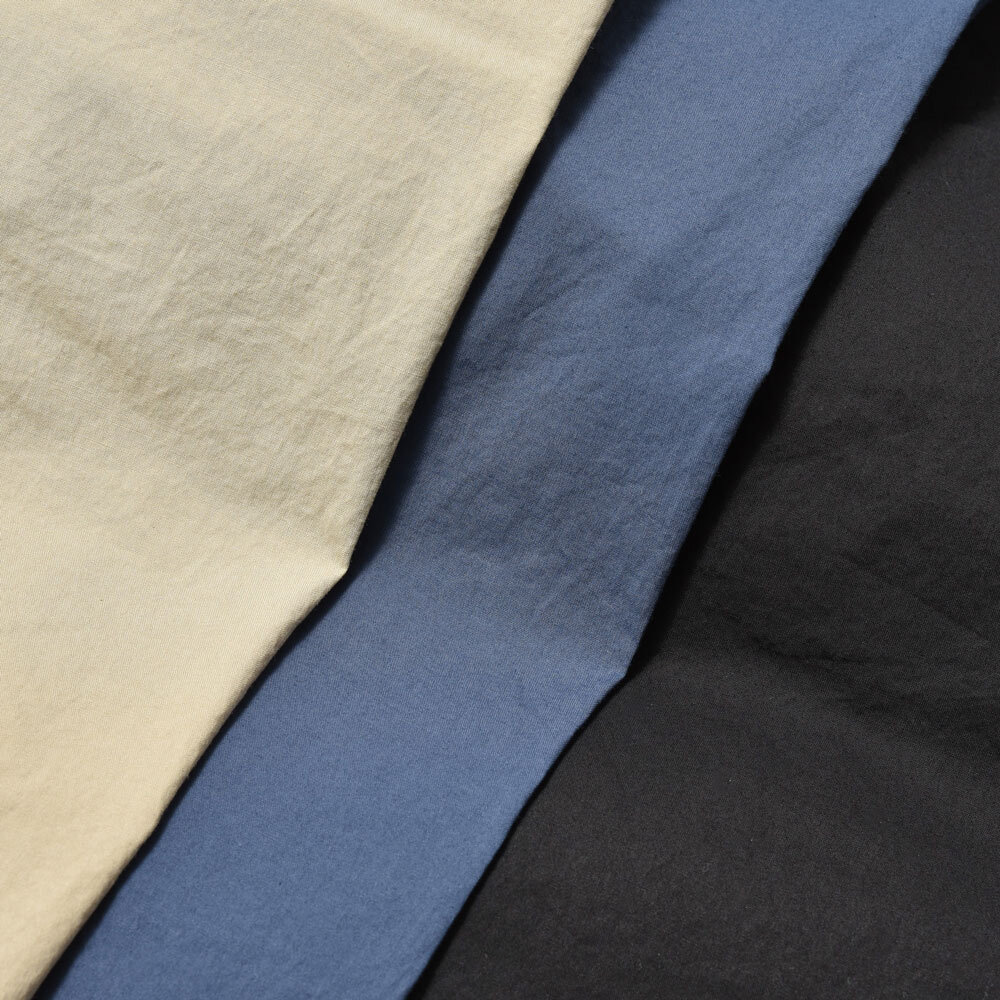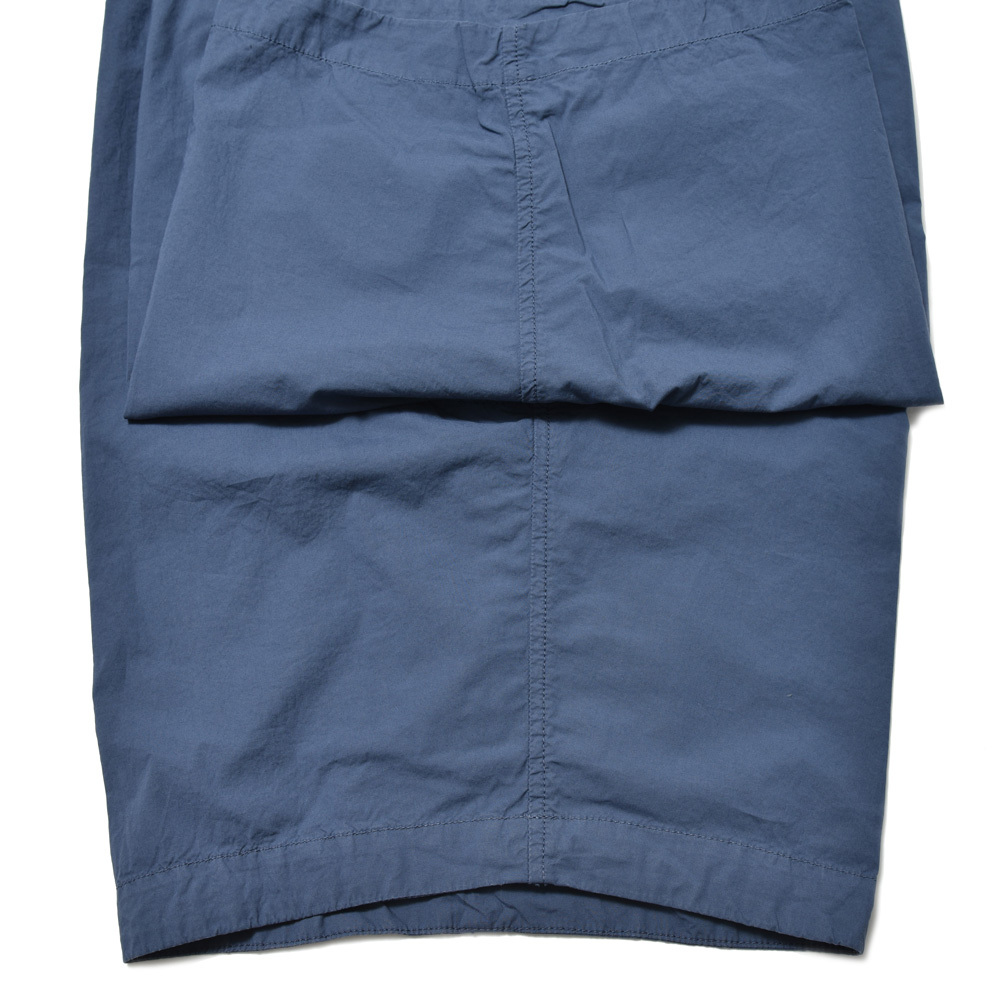 ウエストがシャーリングタイプのいわゆるイージーなショーツになります。ガーメントダイの生地を使っているので全体的にカジュアル感がしっかり前に出るような感じになります。