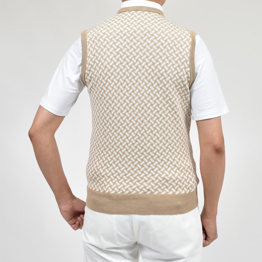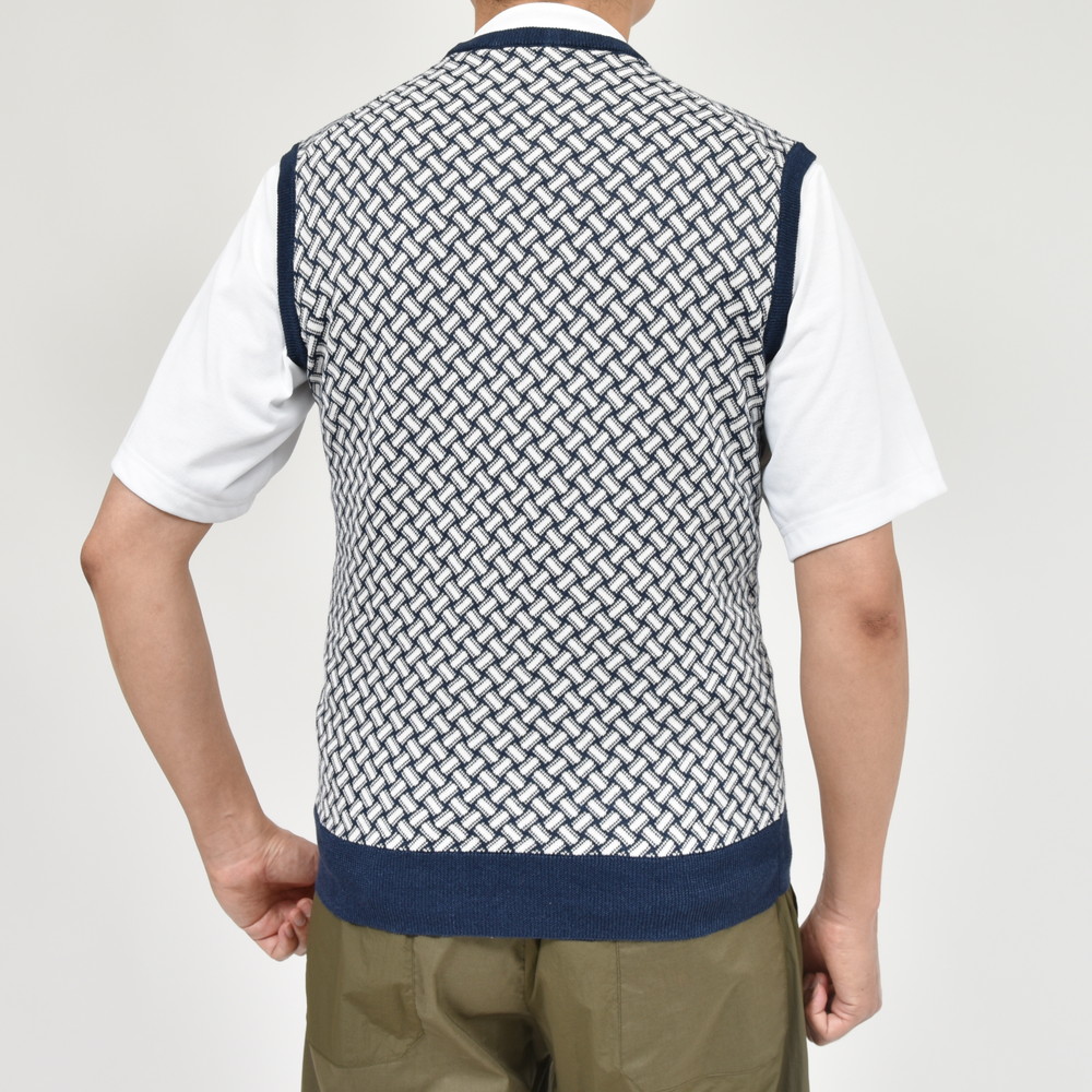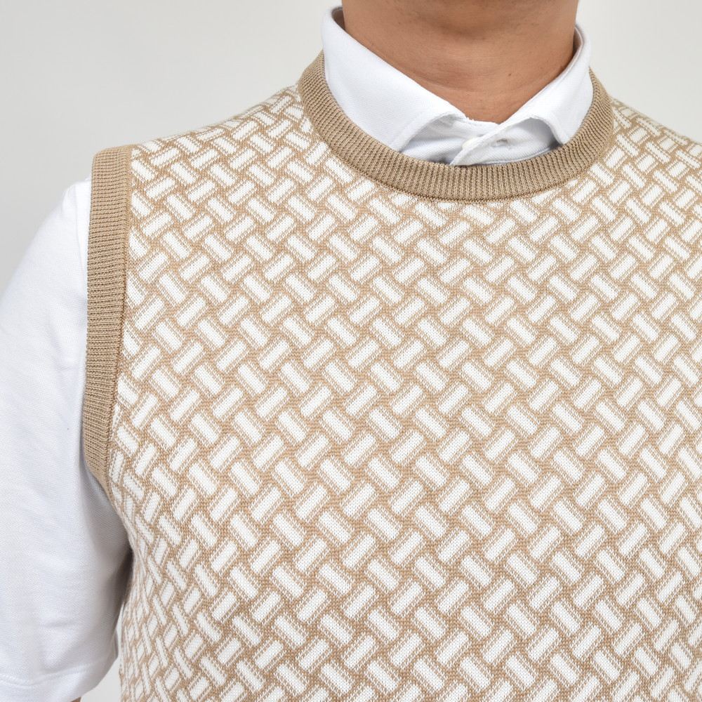 ハイゲージコットンリネンビスコッティパターンクルーネックベスト D9LZ464N