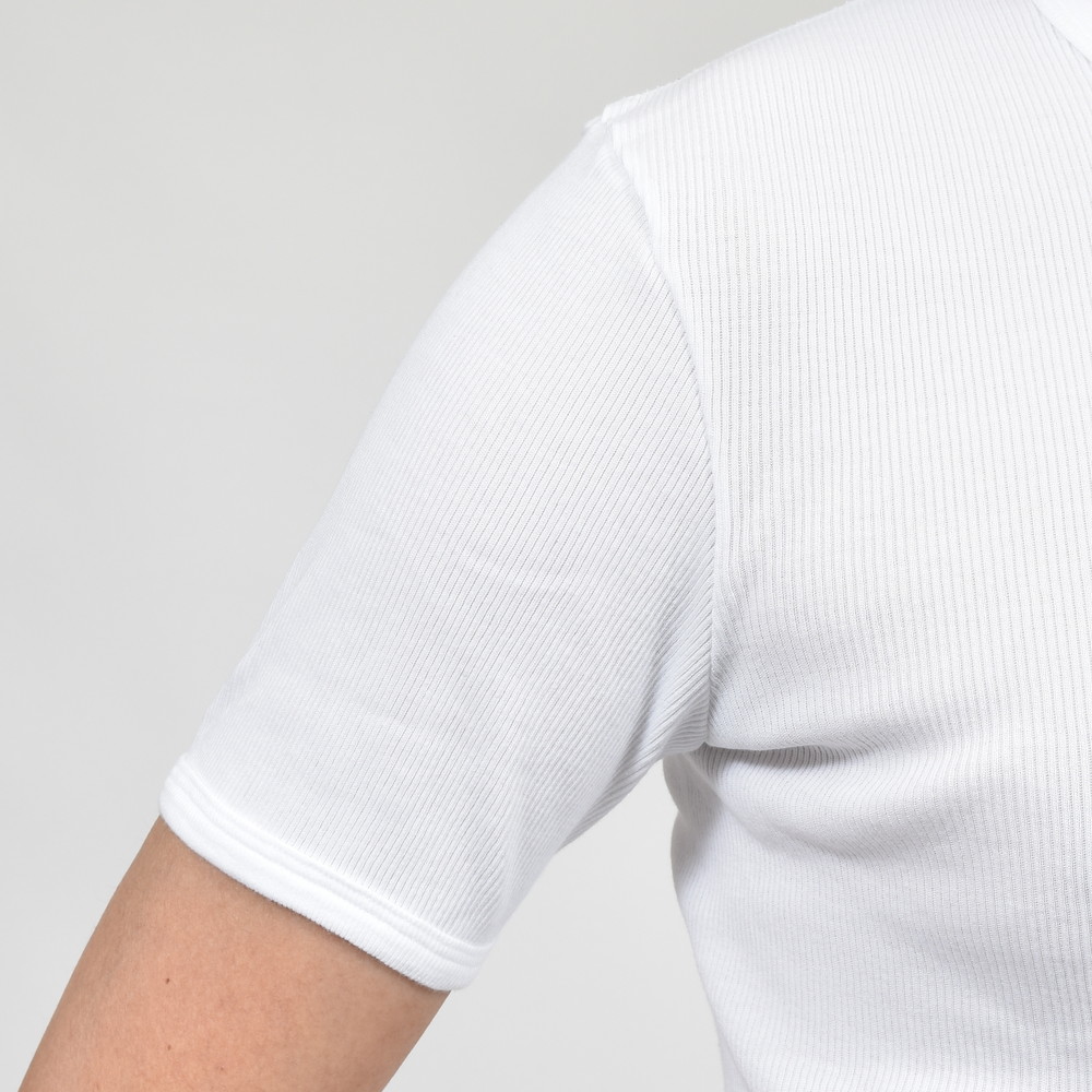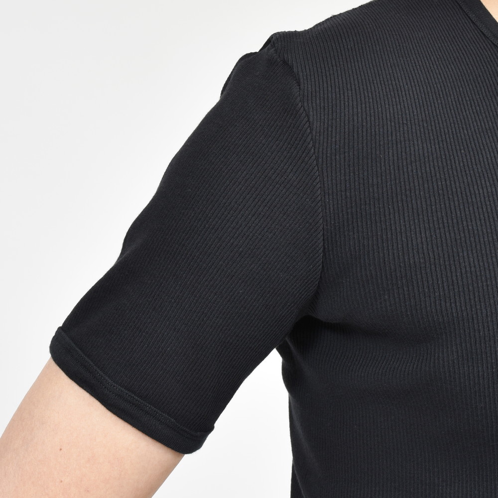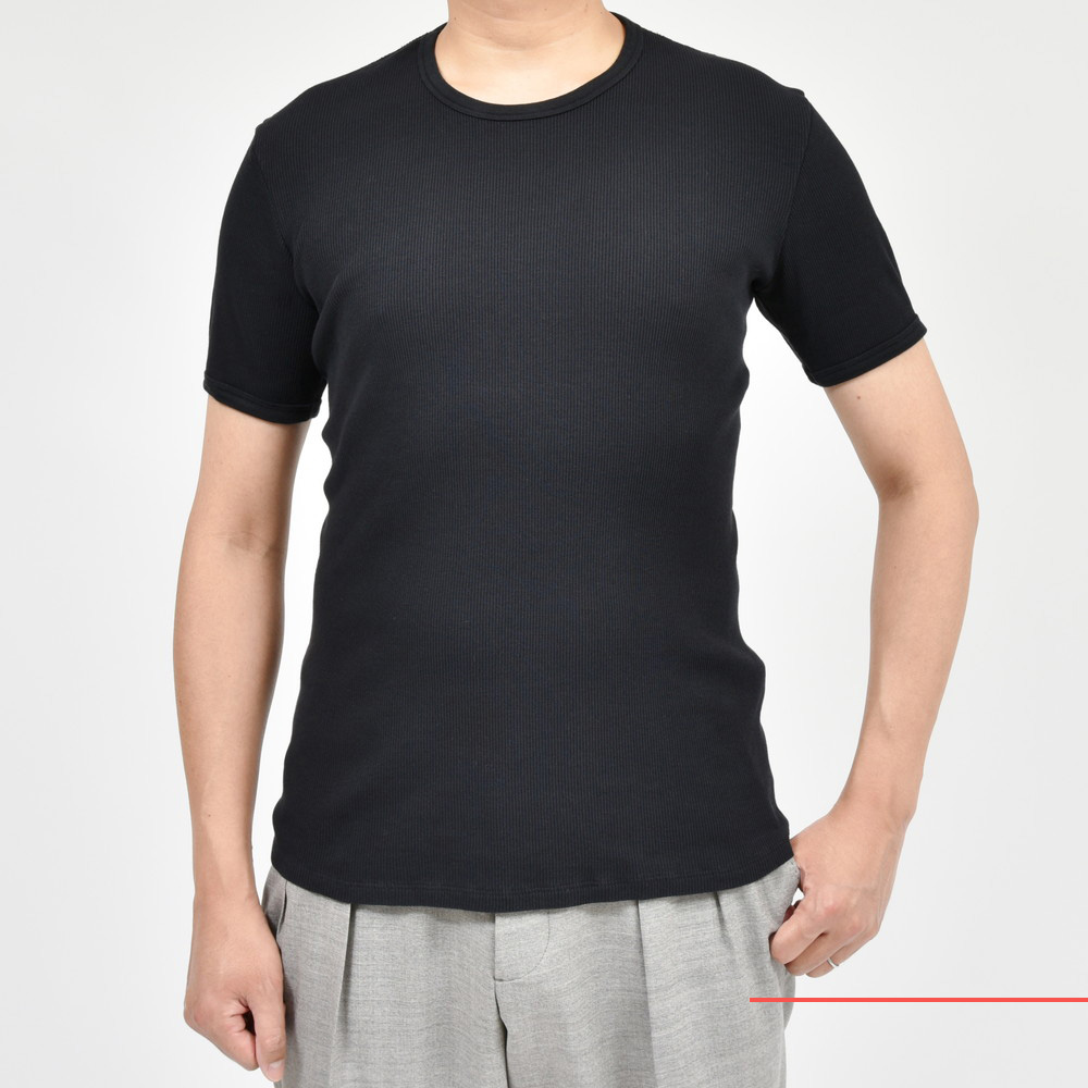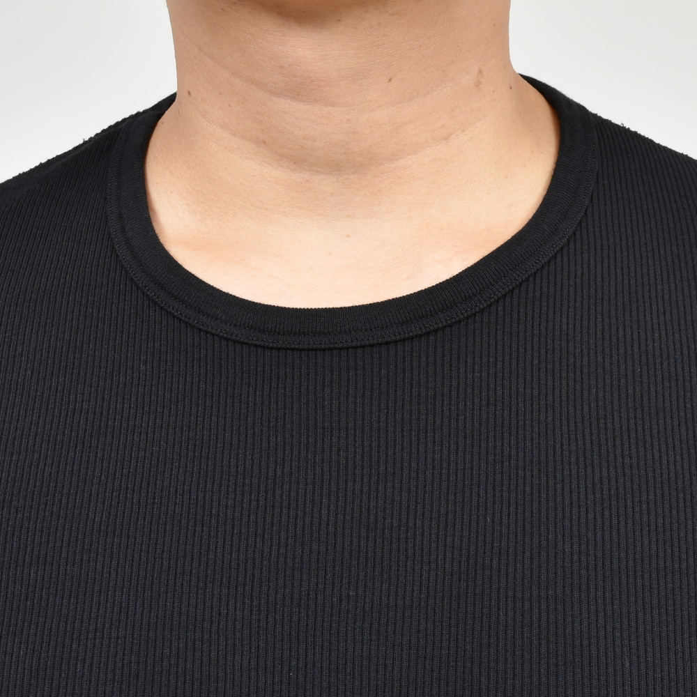 心地良いフィット感を生む伸縮するリブ素材生地はヨレを防ぎ耐久性に優れています。
