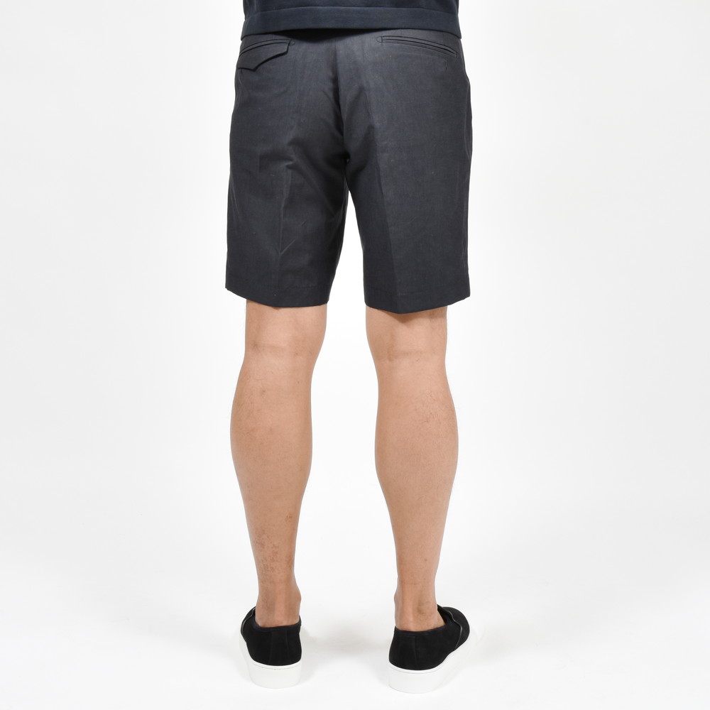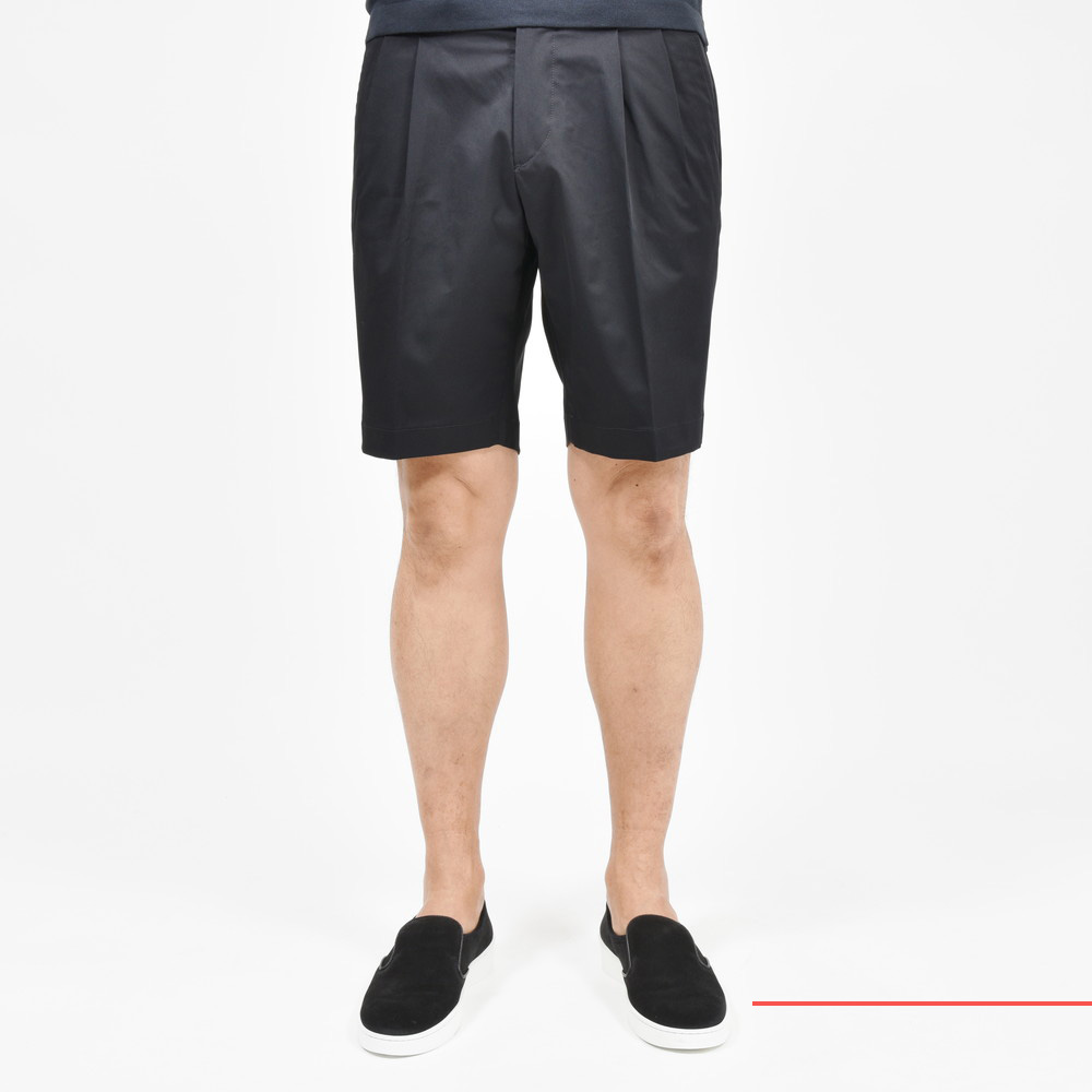 ベルトループを付けプリーツをアウトプリーツに、股上の深さ、腰回りのゆとり、膝上丈になるレングス、広すぎない裾幅が特徴のGUJI SHORT。