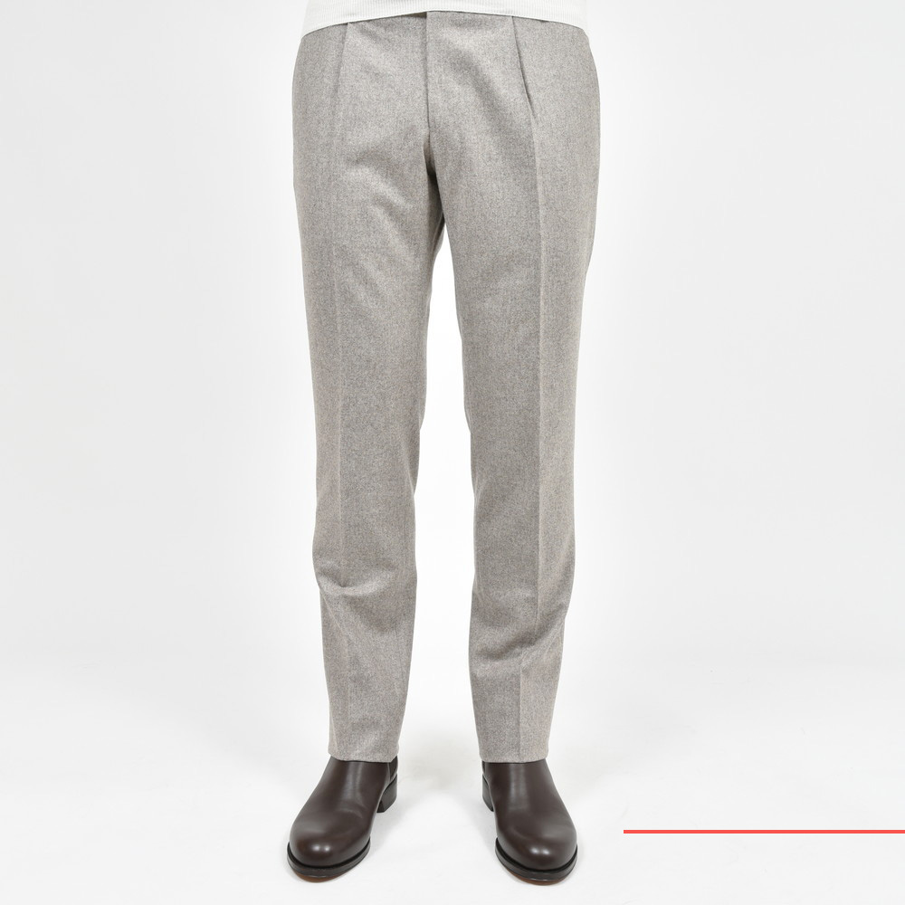 程良くスリムでバランスの良いテーパードライン、深すぎず浅すぎないスッキリした見え方になるウエスト1プリーツディティールを備え、無駄なくモダンなスタイルを生み出してくれる名品と呼べる一本。