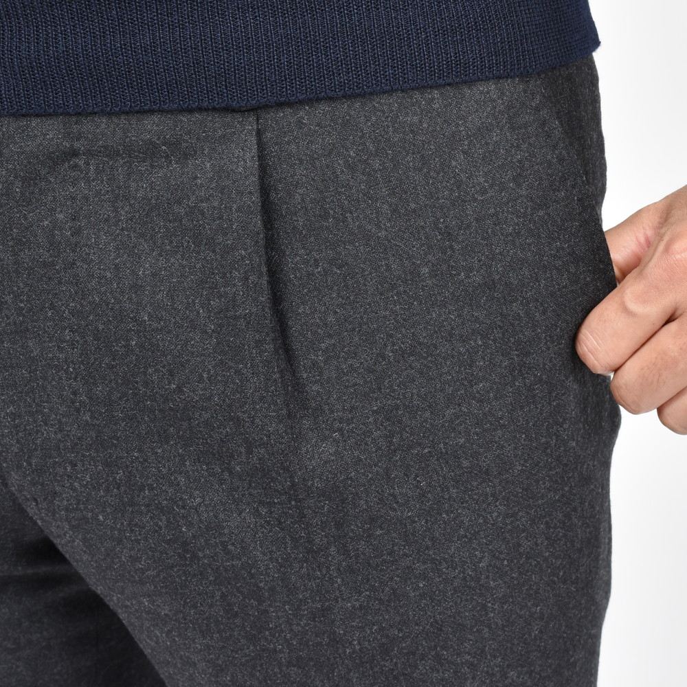程良くスリムでバランスの良いテーパードライン、深すぎず浅すぎないスッキリした見え方になるウエスト1プリーツディティールを備え、無駄なくモダンなスタイルを生み出してくれる名品と呼べる一本。