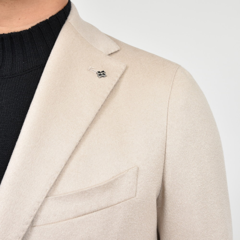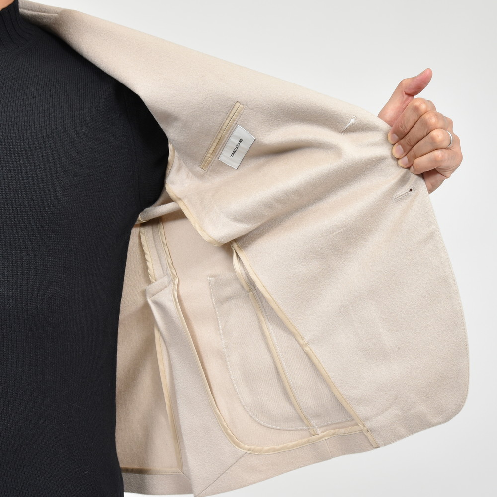 艶っぽさあり、品あり、軽さあり、それ出ていて軽薄な感じにはならない絶妙なバランス感のジャケットになっています。カシミアだからこその美しさが確かにあるなと体感してもらえるはずです。