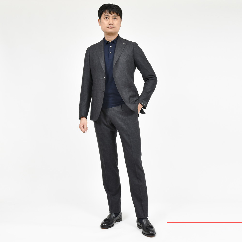 組下のパンツと共にセットアップで着用するもよし、単体でよりカジュアルな雰囲気で着るもよし、紳士のスタイルを支えてくれる一着は非常に懐が深いです。