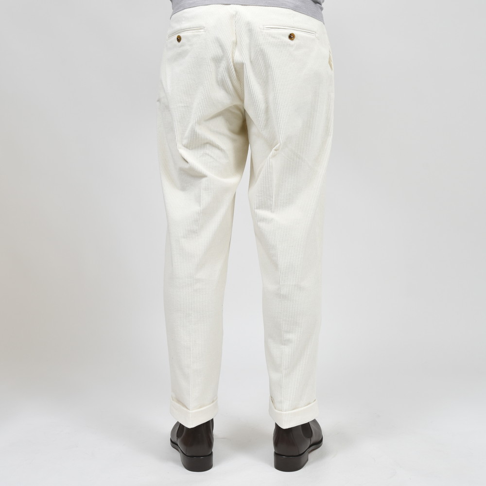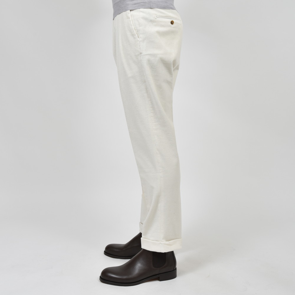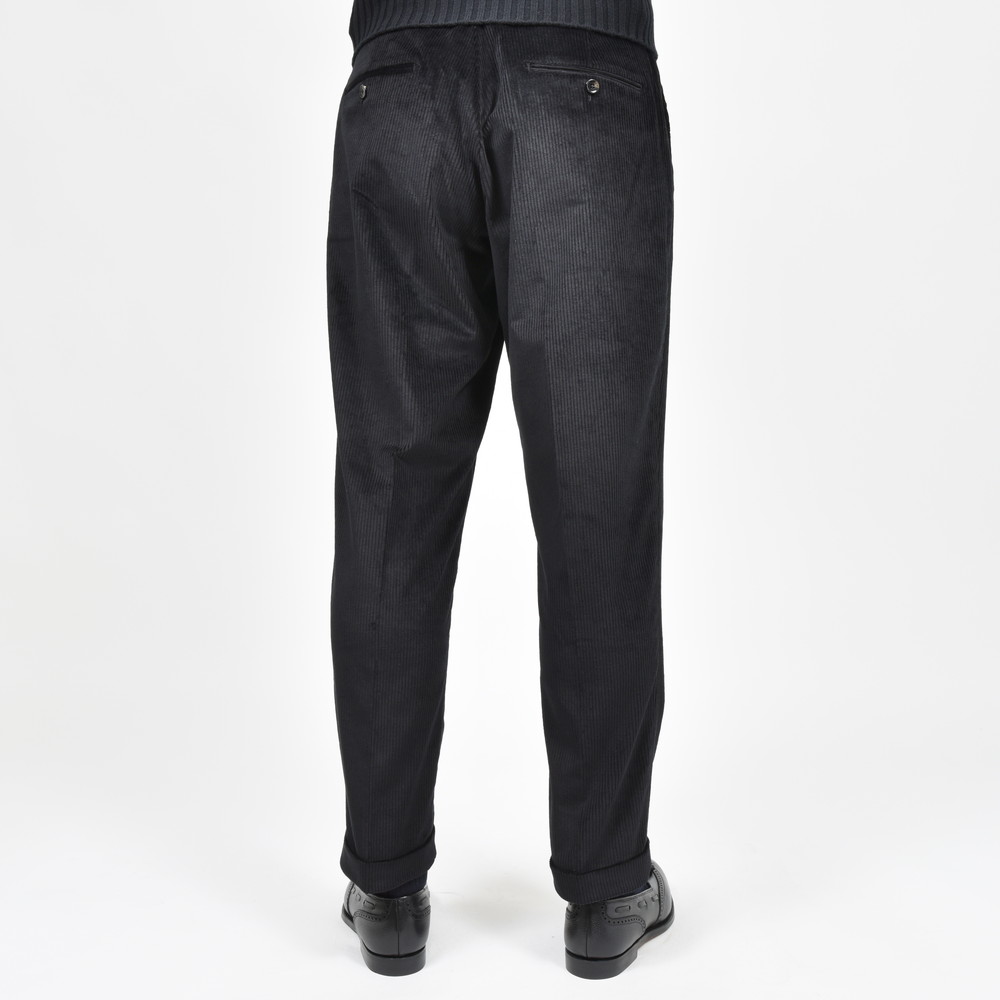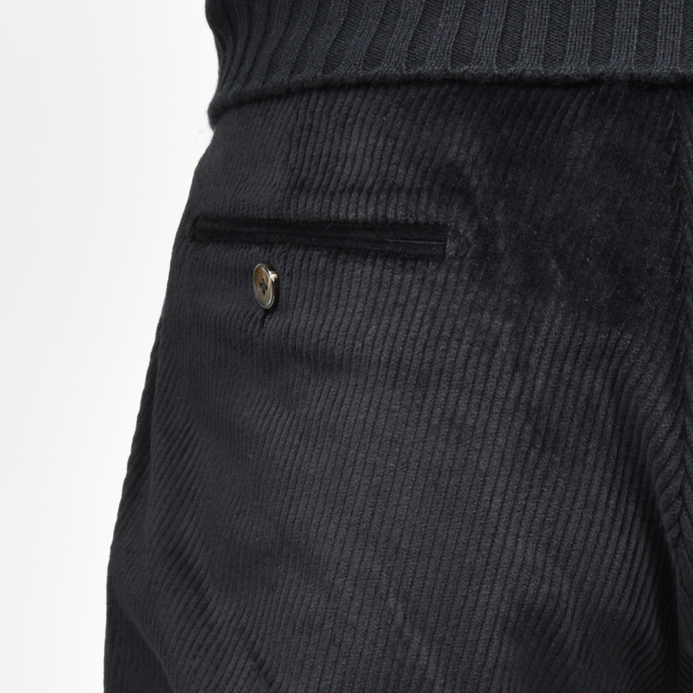 秋冬シーズンに欠かせない素材であるコーデュロイ、畝の感じはやや太めの印象でしょうか。シルエットのバランスも相まって他にはないムードが立っています。