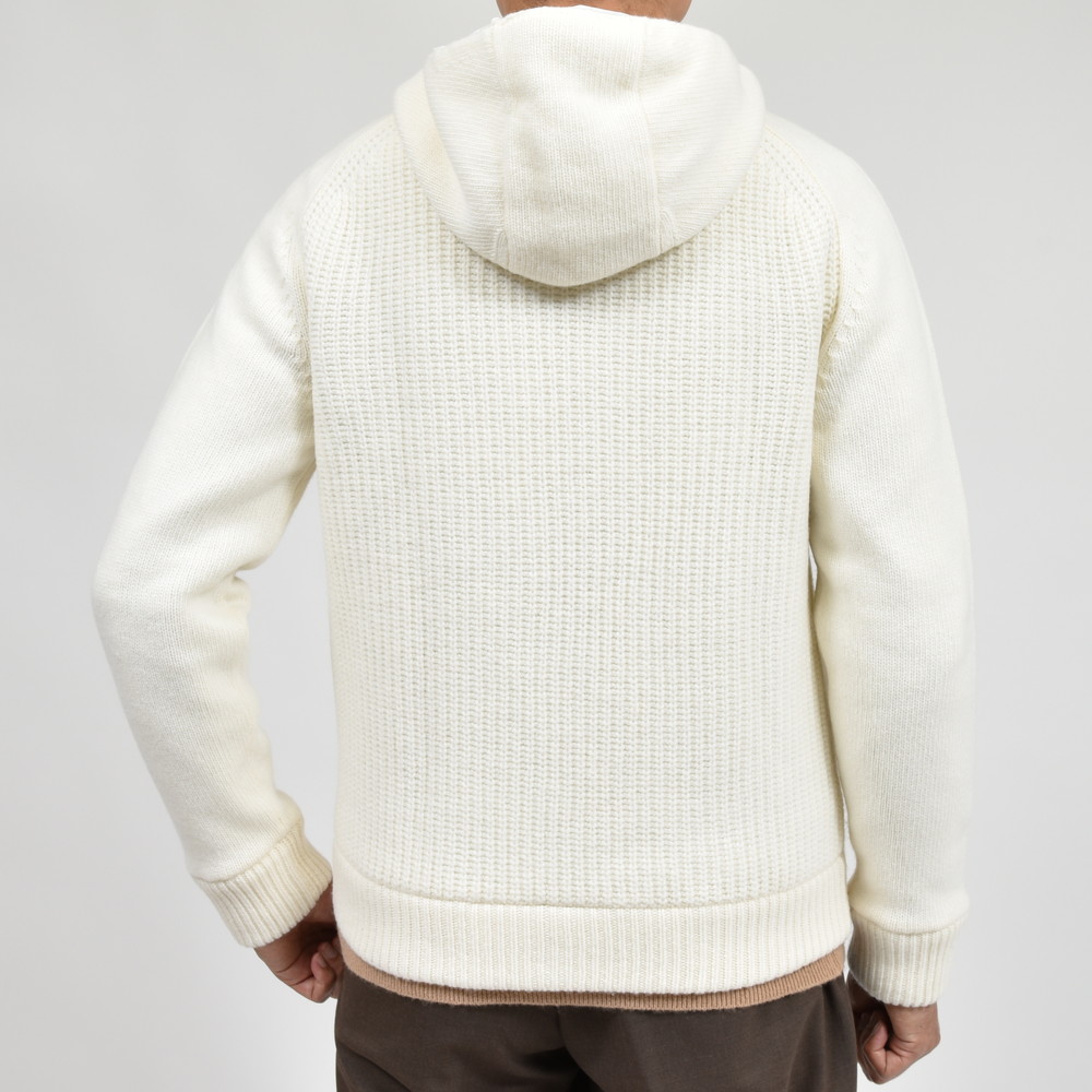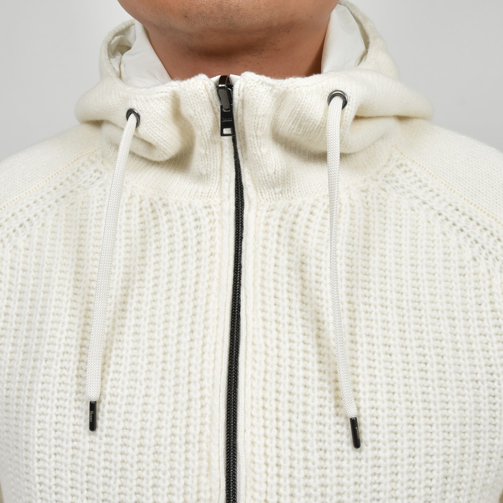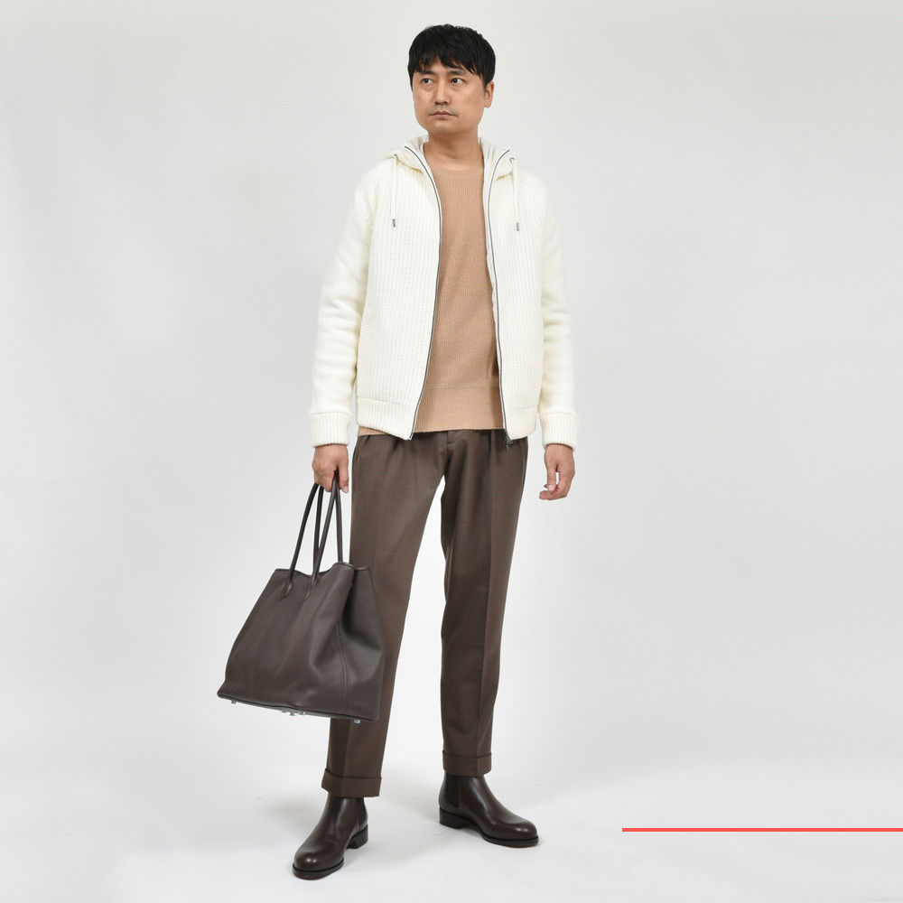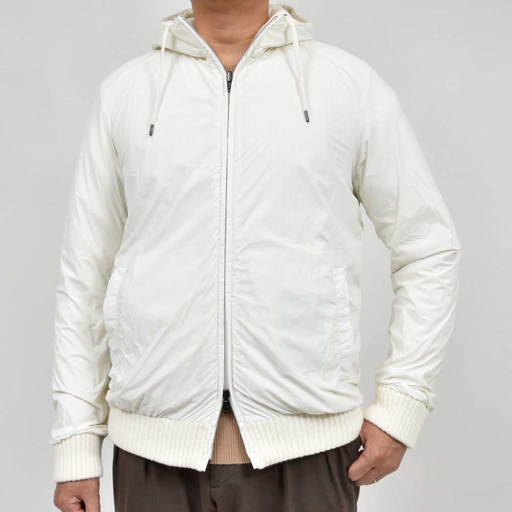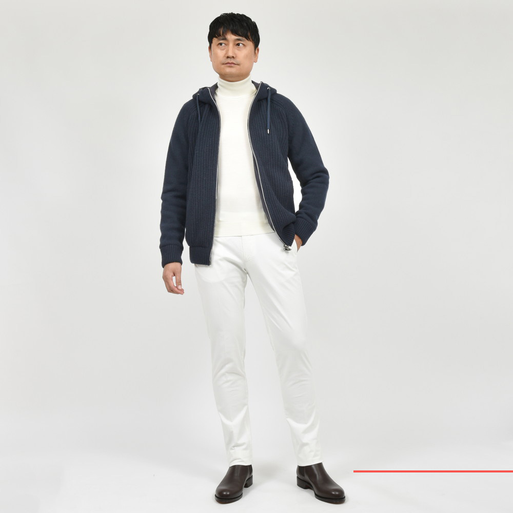 HERNO(ヘルノ)が提案するジップフーディーは、得意としているニットをアウター的に用いるアイディアによって仕上げられています。