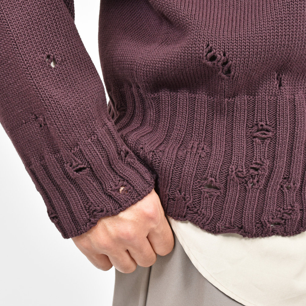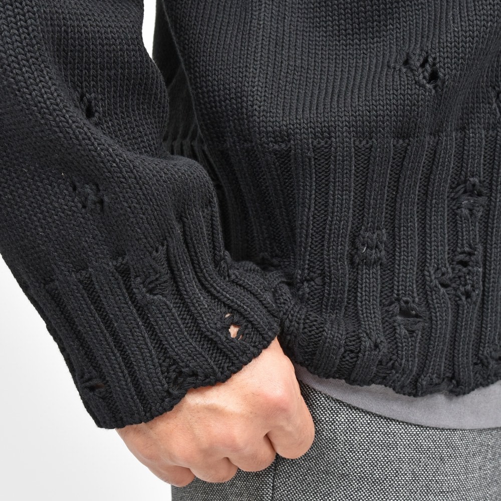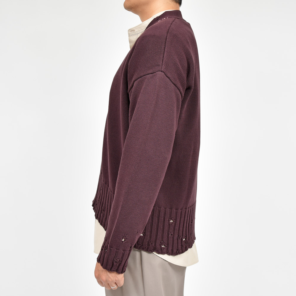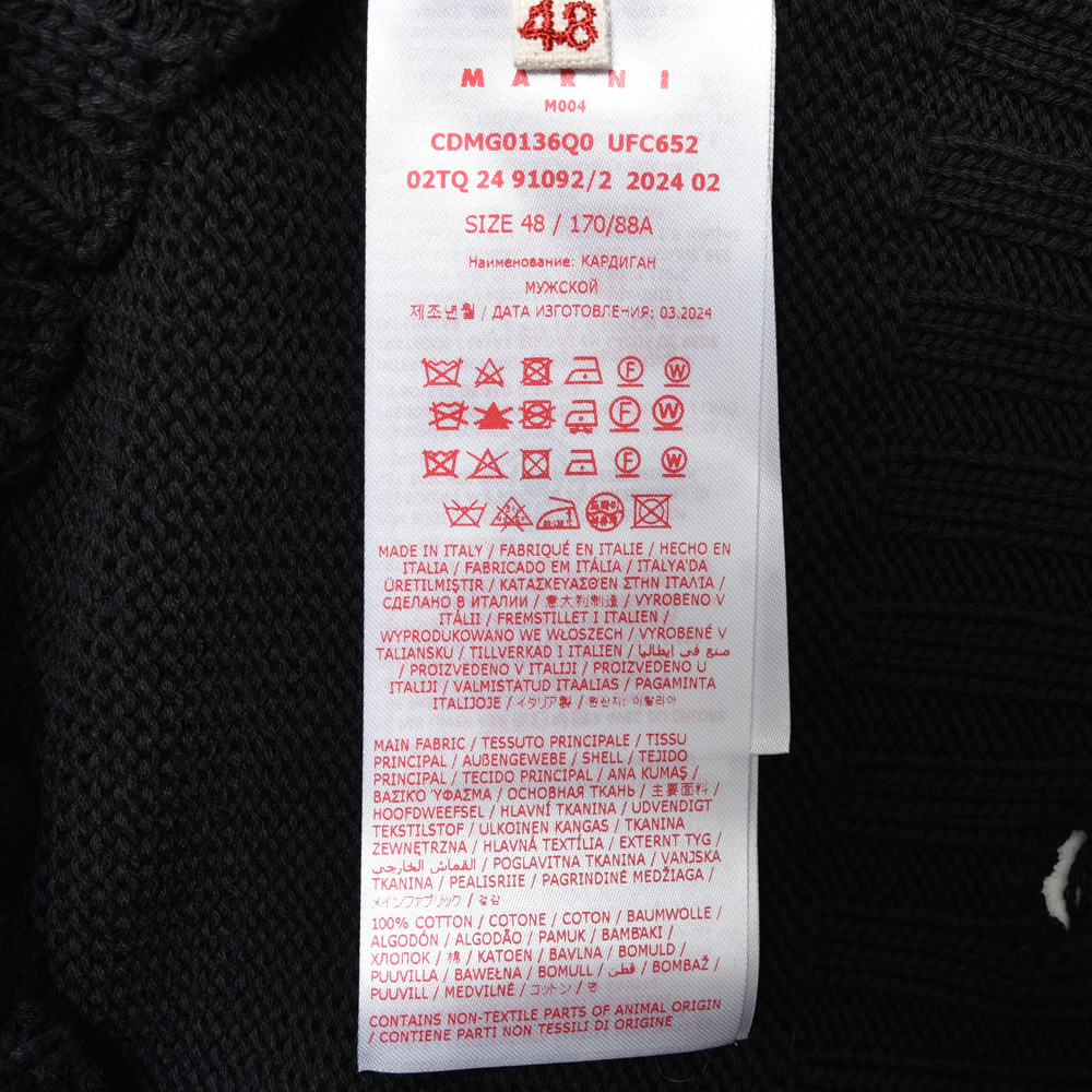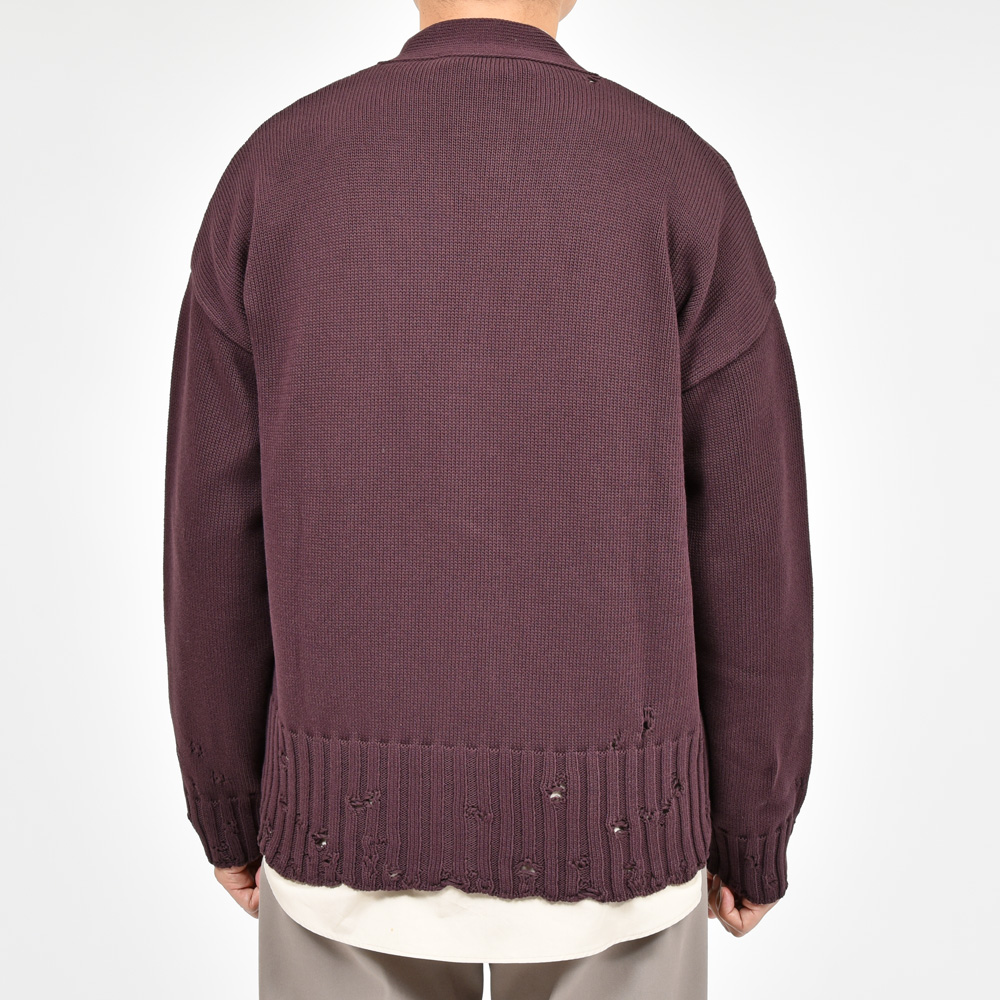 MARNI(マルニ)のダメージニットカーディガン、ここ最近定番的な存在となっているアイテムです。アイテムとしてはベーシックなんですが襟周りや裾リブ部分にダメージ風の穴あきを施すことによってファッション性を高めています。