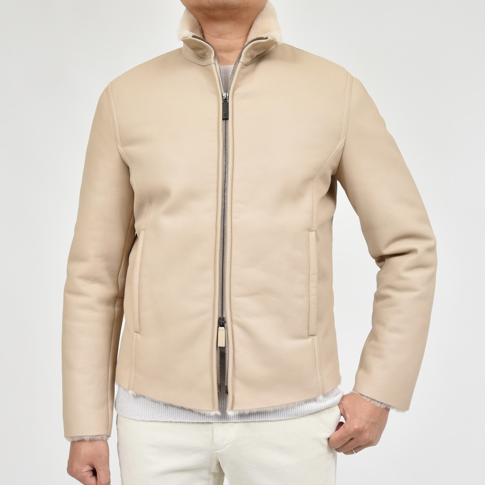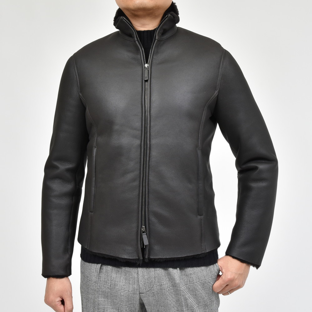 ムートンレザースタンドカラーダブルジップブルゾン 83757/AE0646