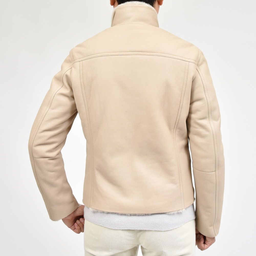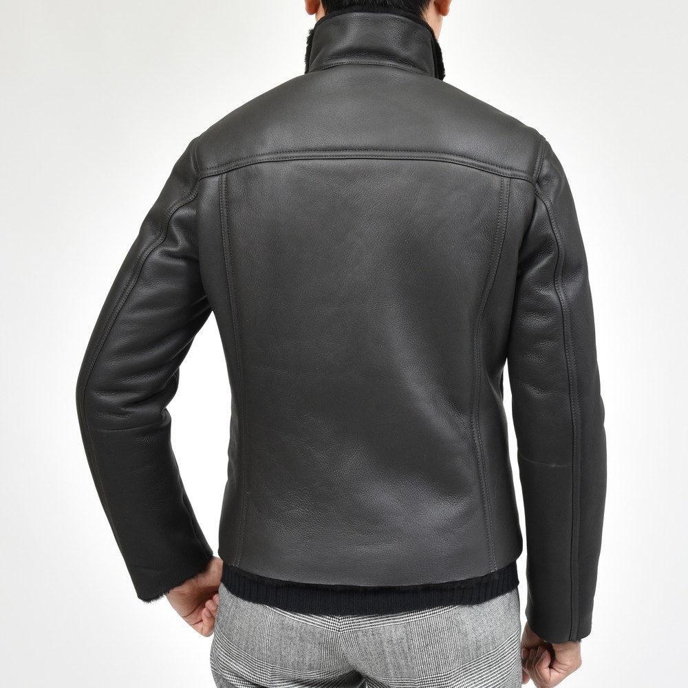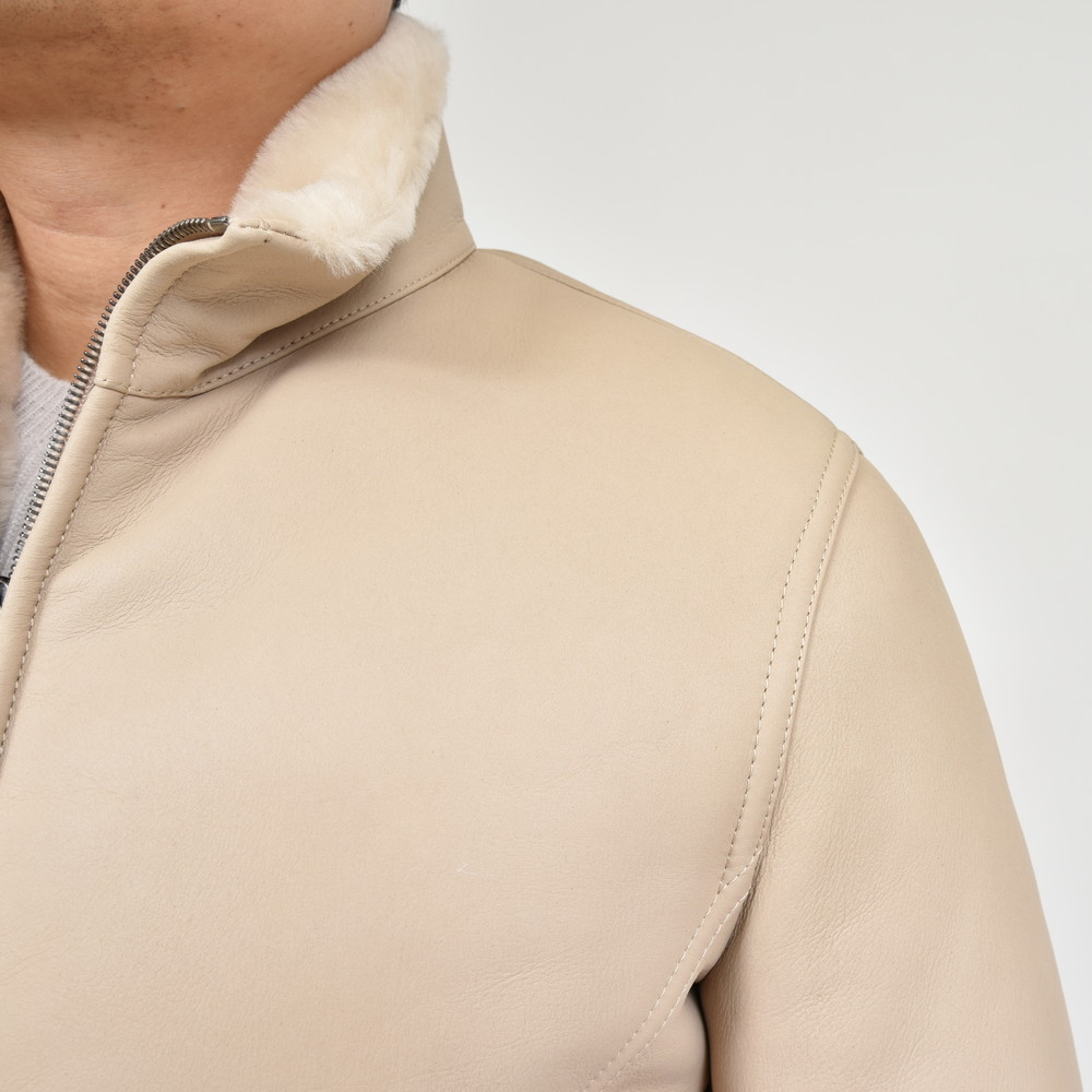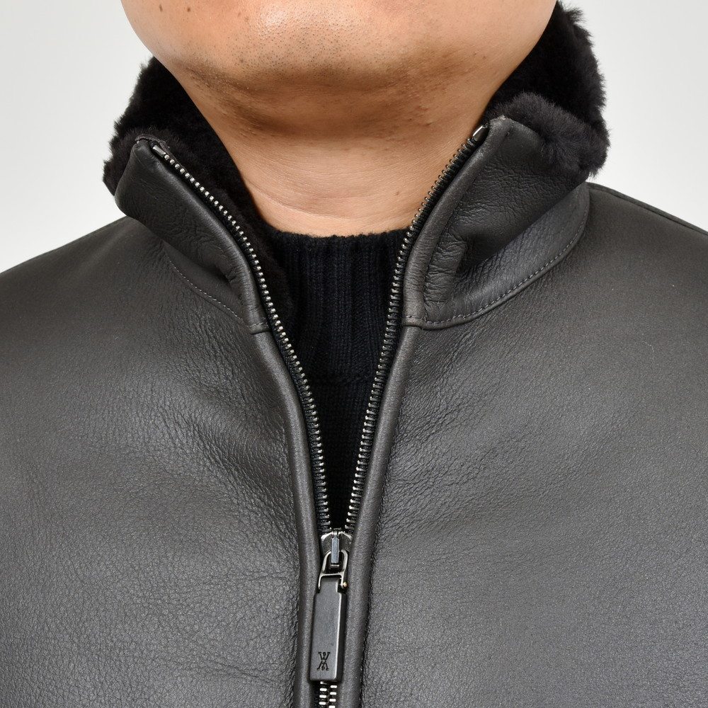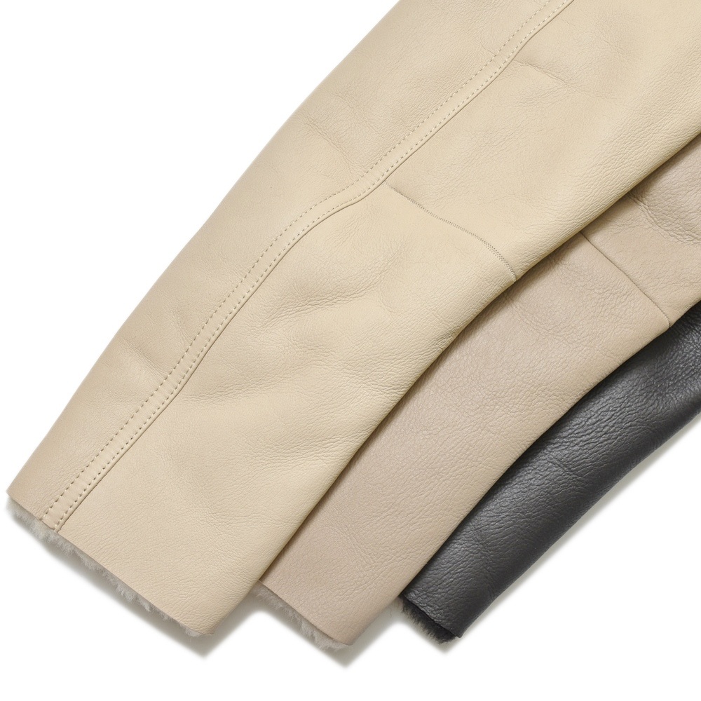 ムートン表面の美しい処理、羽織った時の軽さ、体の動きを妨げない可動域の確保、スマートなシルエット。