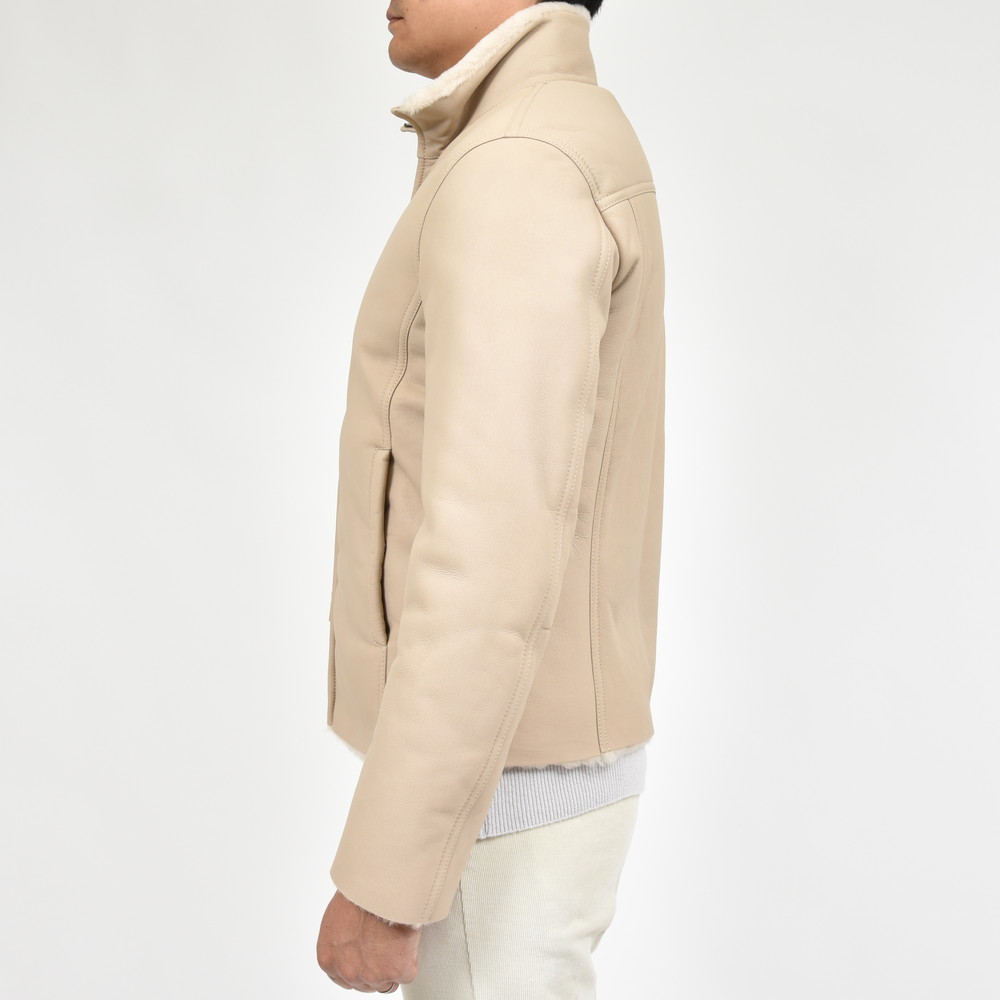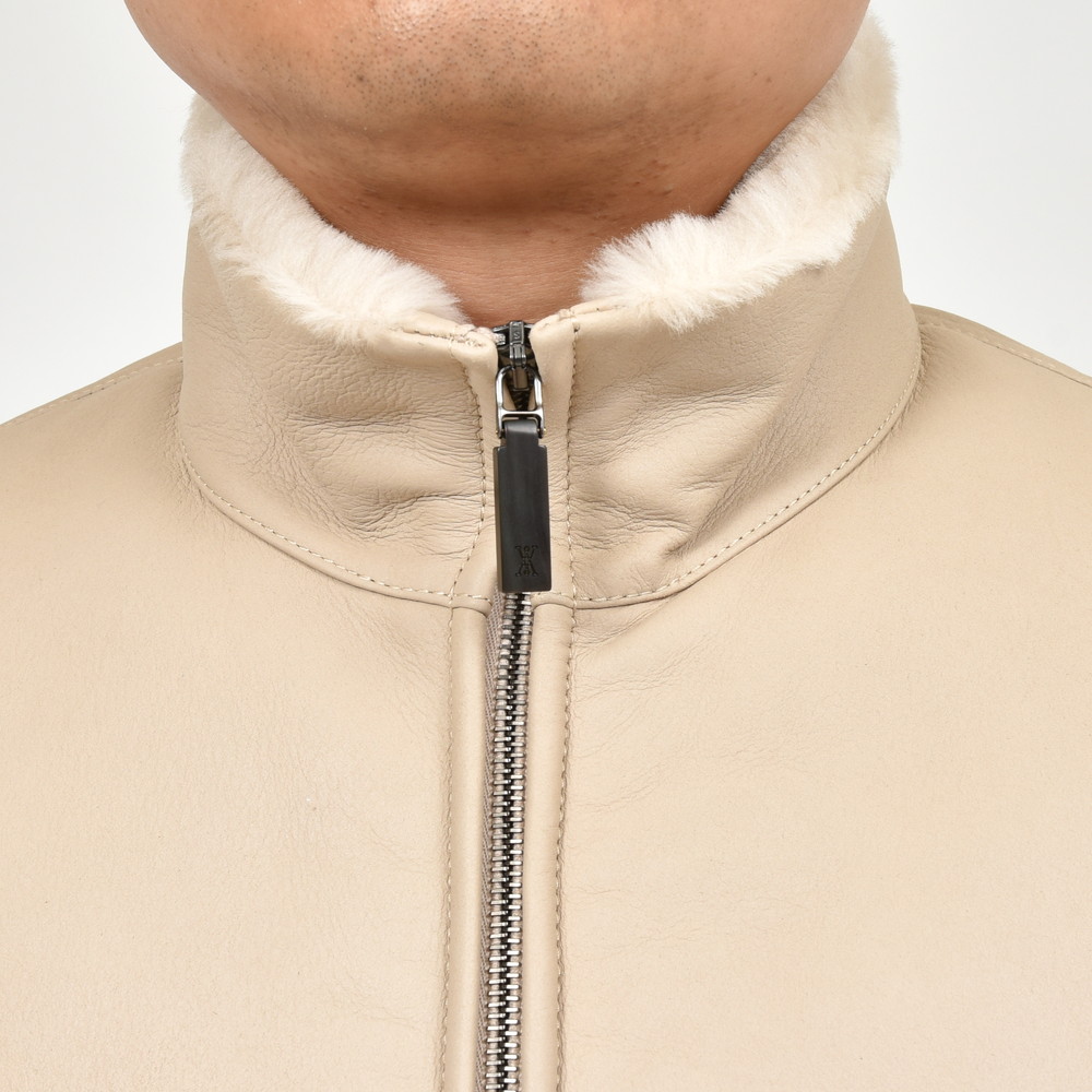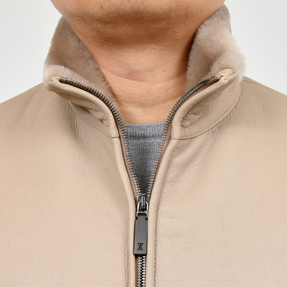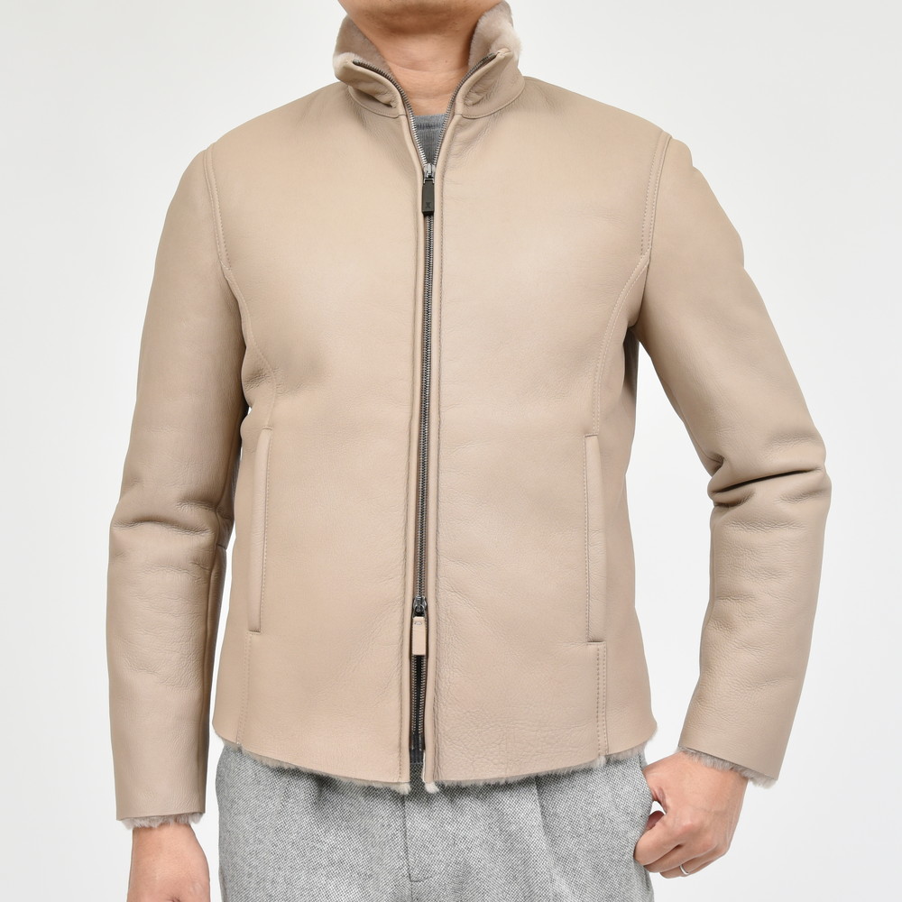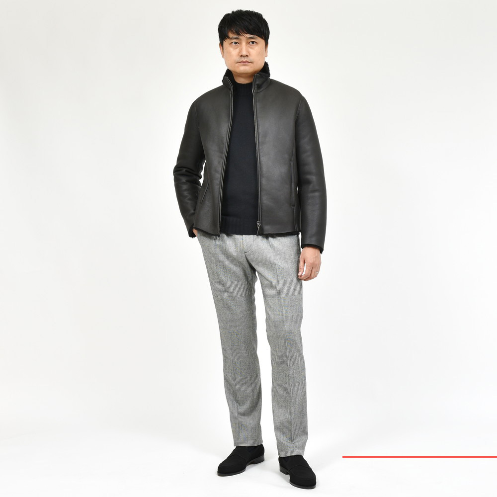 ムートン表面の美しい処理、羽織った時の軽さ、体の動きを妨げない可動域の確保、スマートなシルエット。