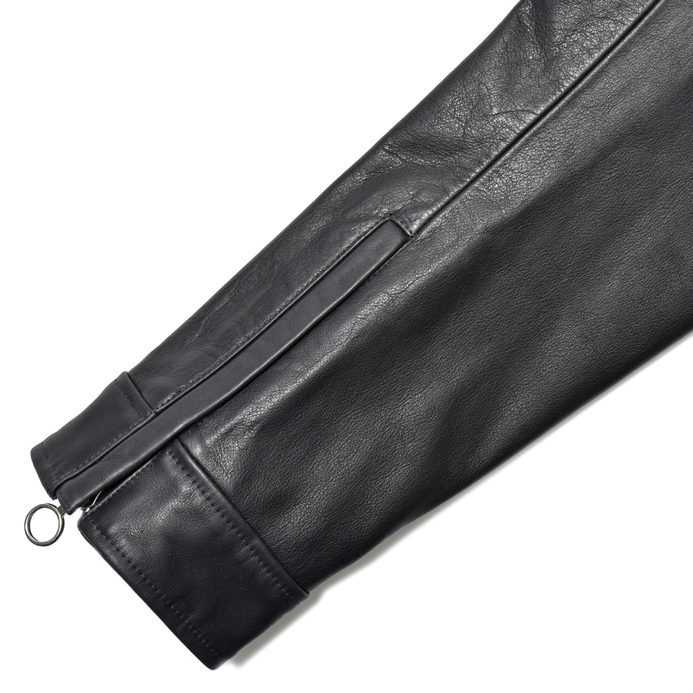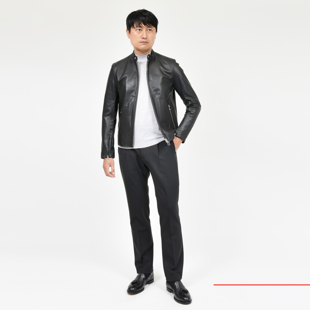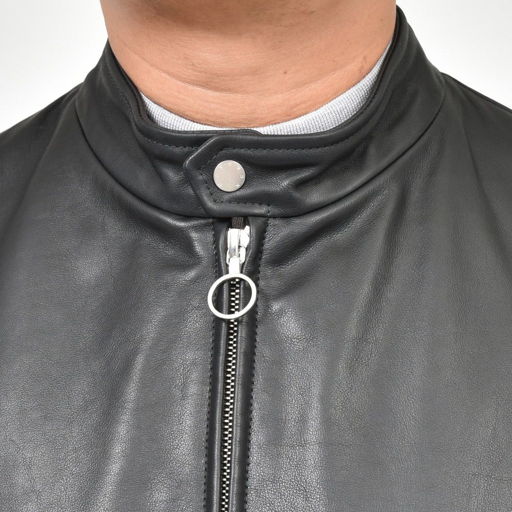 カーフレザーとライダースというのは本来相性の良いものですが、最近はラムレザーが多く用いられていて、なかなか見られないようになりました。