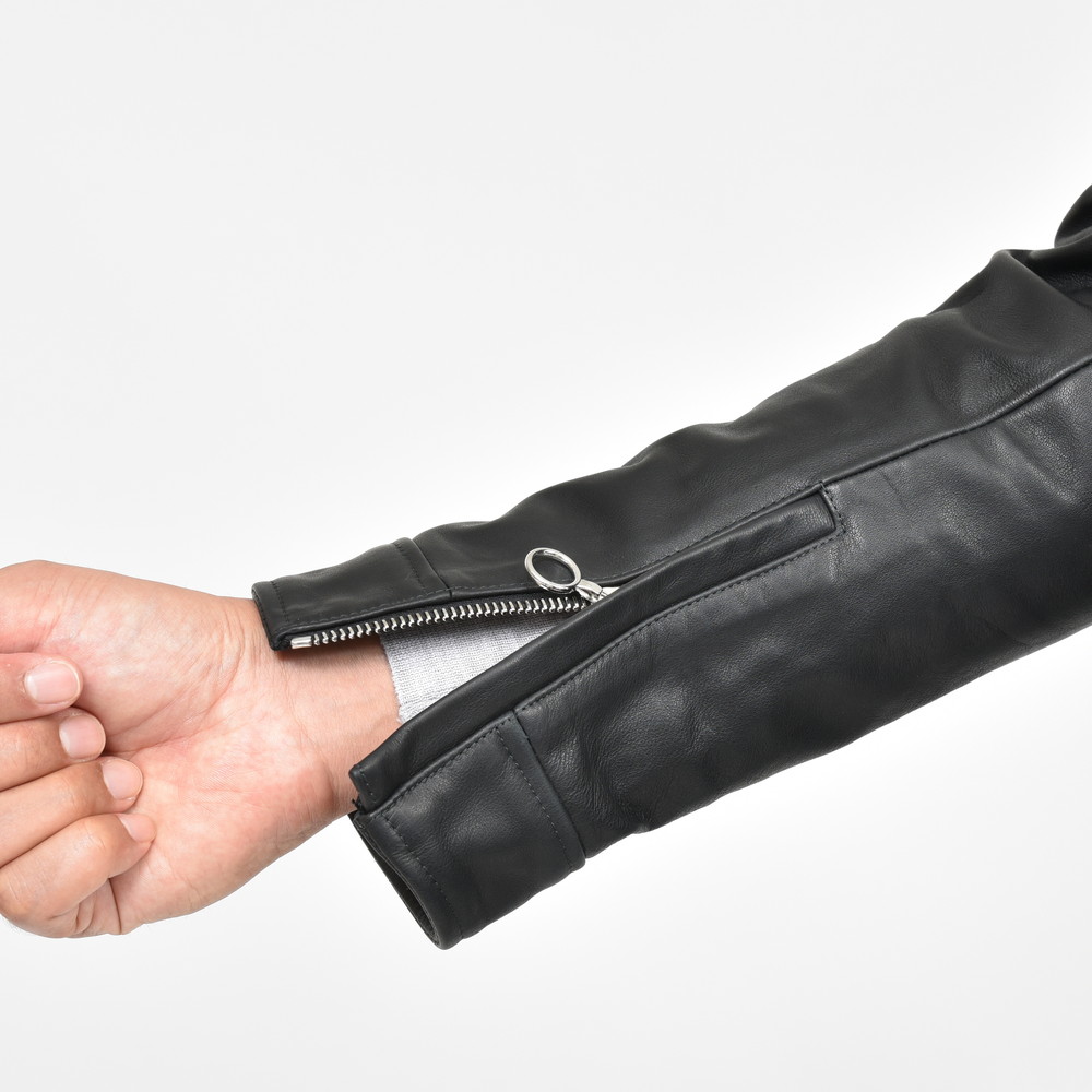 元々が非常に洗練されたライダースであるBIKER ANDYなのでカーフレザーを用いてもタフさが全面に出てくるというわけではありません、定番で展開していたラムレザーと比べると確かにタフかなというレベルです。