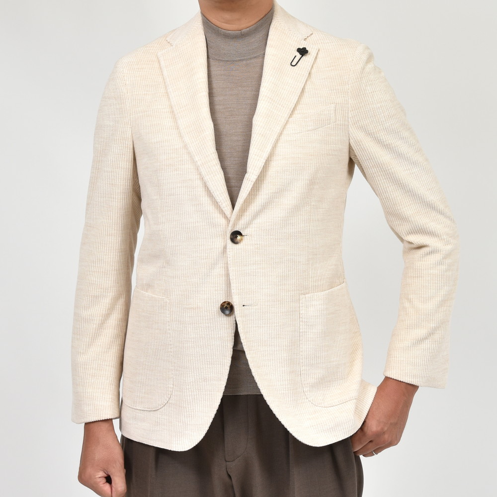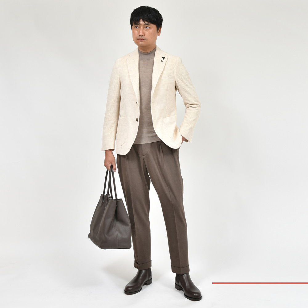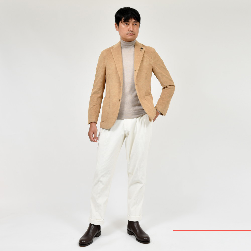 コーデュロイ素材をここまでモダンな雰囲気に仕立てることができるのはLARDINIの歴史とセンスならではだと思います。