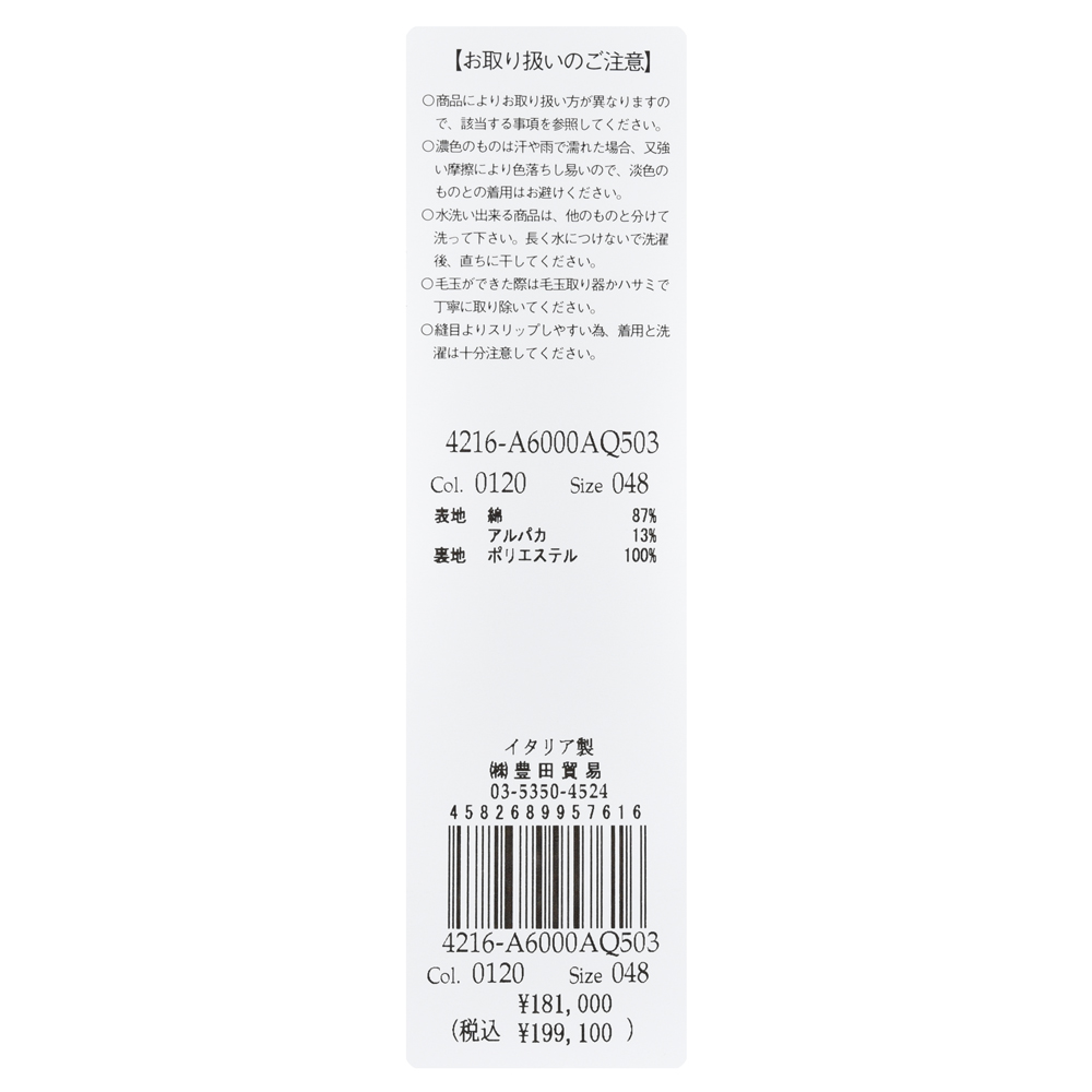LARDINIとしての生地名称は“ALPACA VERVET”。