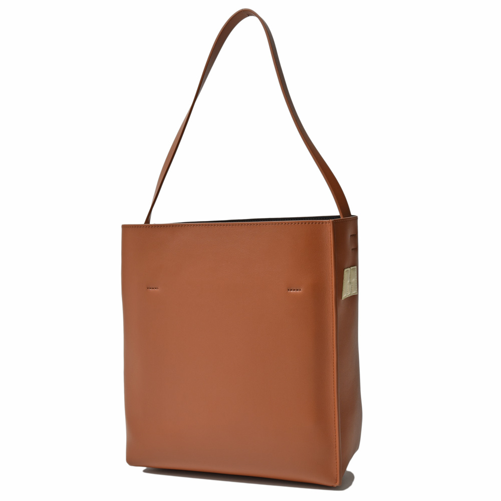 トップブランドでは毎シーズン様々なバッグが提案されていますがMARNI(マルニ)も同様なんです。こちらはスムースカーフレザーを用いた柔和な印象のホーボーバッグでして手持ち肩掛けと両方でお使いいただけるちょうど良い大きさもポイント。