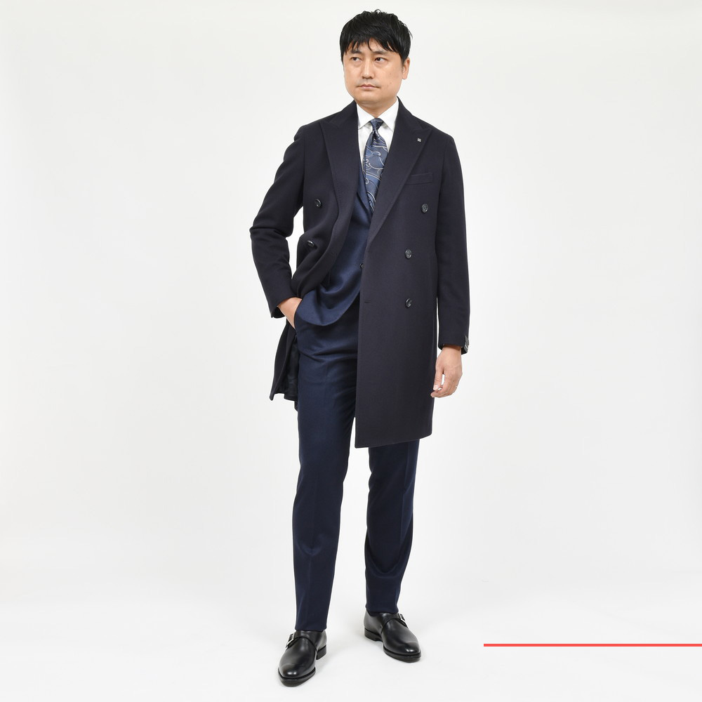 TAGLIATORE(タリアトーレ)のチェスターコート、別注仕様のダブルブレストも定番アイテムとしてご用意しています。