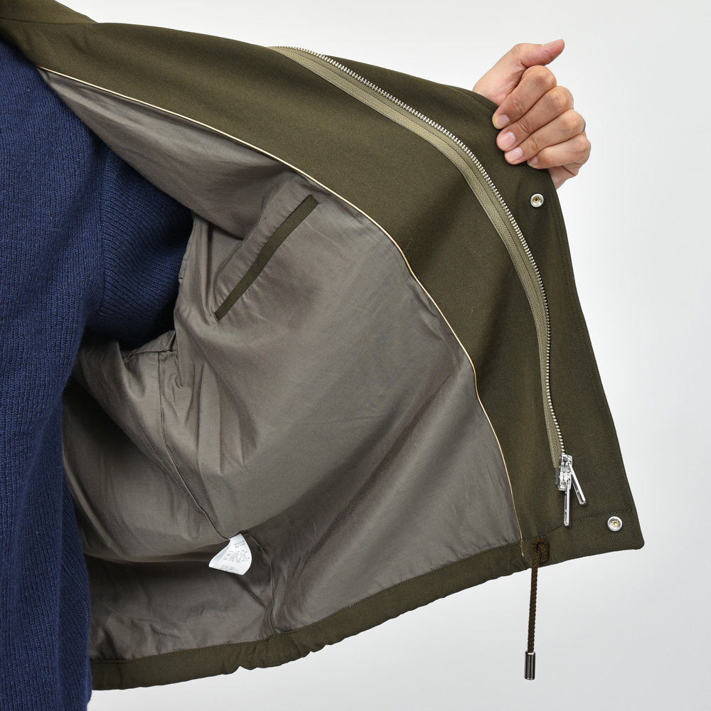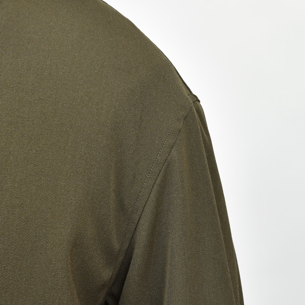 フラップポケットのヨーク、スナップボタンは一つだけ露出するなど、ディティールの足し引きが緻密に計算されたデザイン、着こなしとしてはニットやスウェットの上からサッと羽織るだけでしっかりと上質なカジュアルスタイルが完成する素敵な一着です。