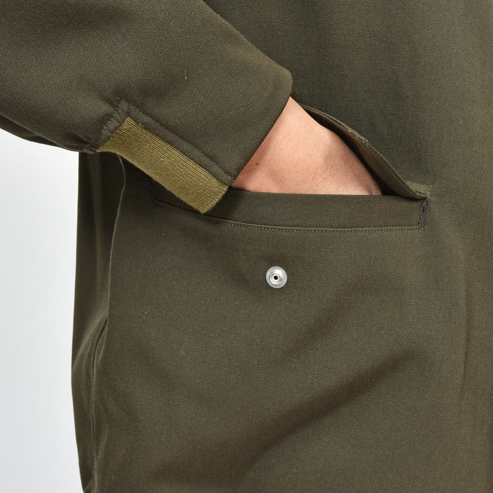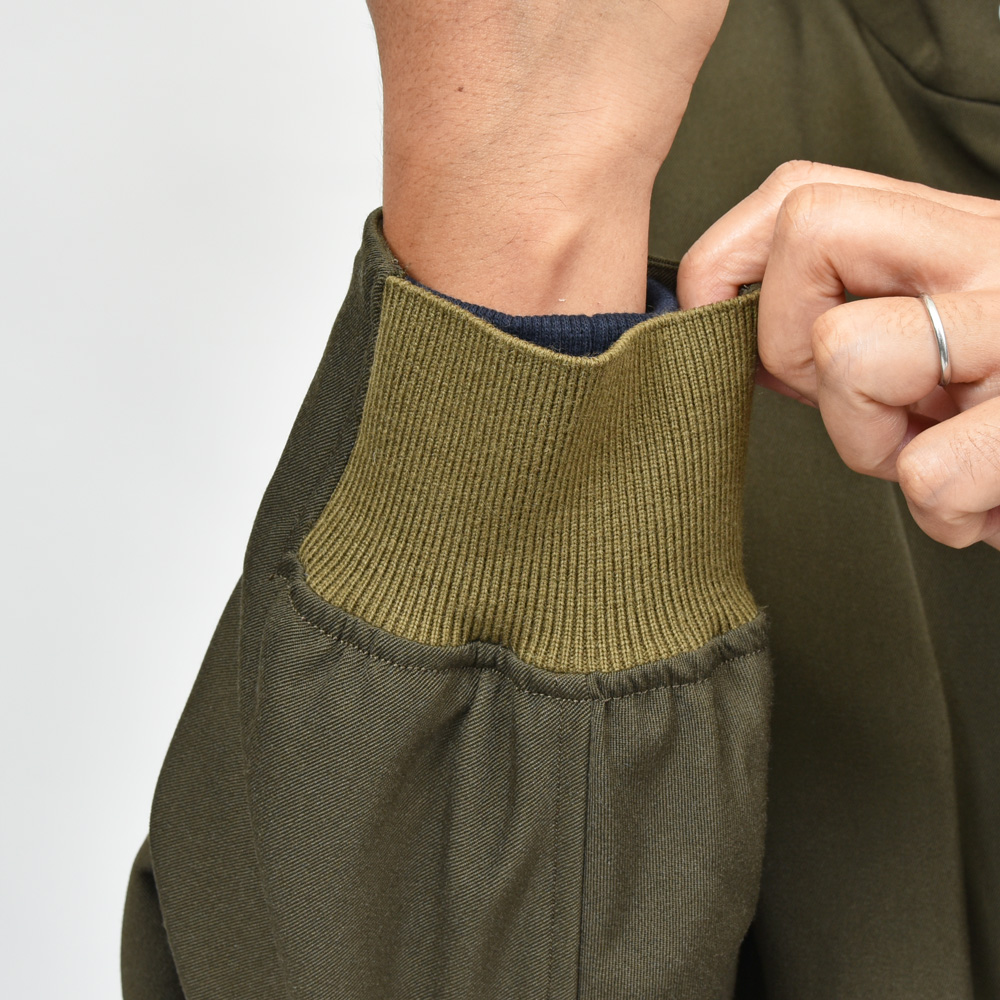 こちらのブルゾンもその一つと言って良いかもしれません。様々なアイテムをミックスしたようなデザインの一着になっていまして、何がどういうディティールで、何処をミックスして、、、というよりもデザイナーである高巣満導氏の感性と知見によって生み出されたようなオリジナルな仕上がりに。