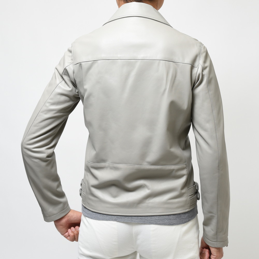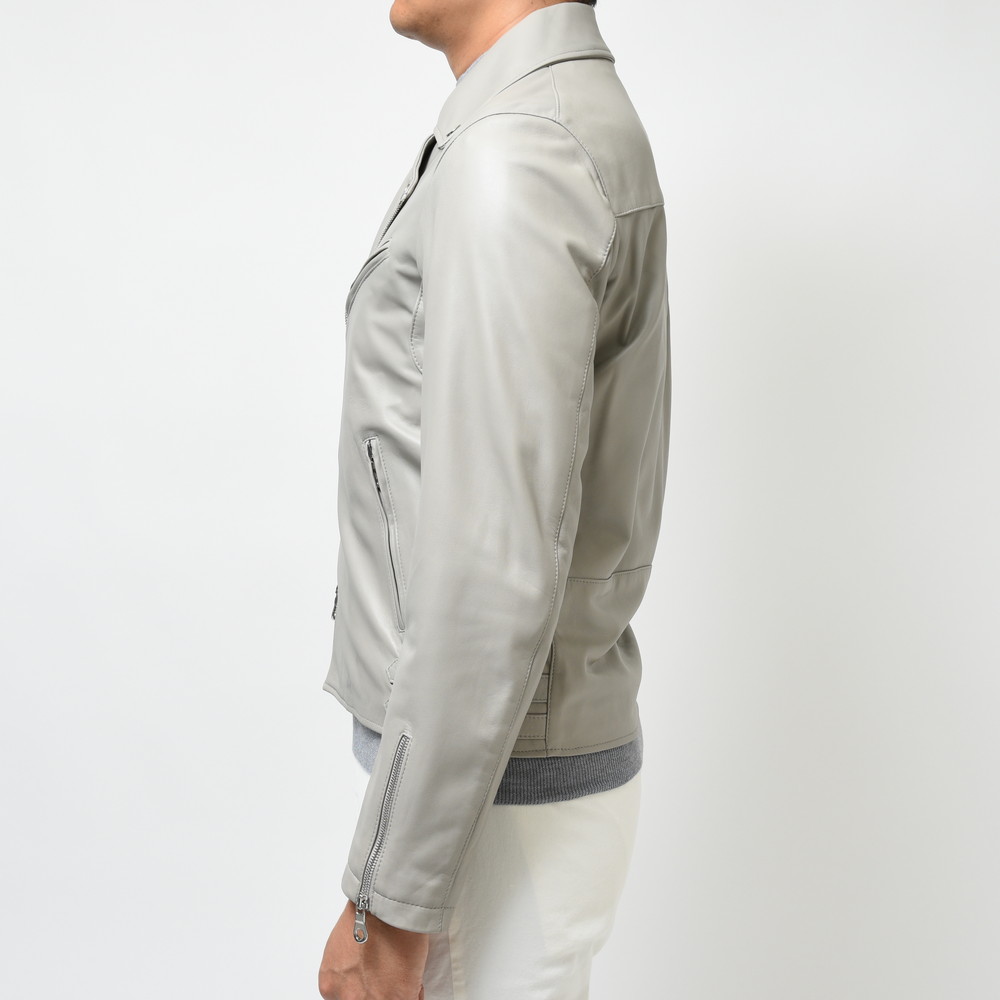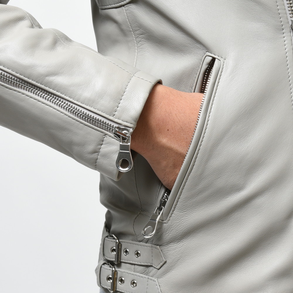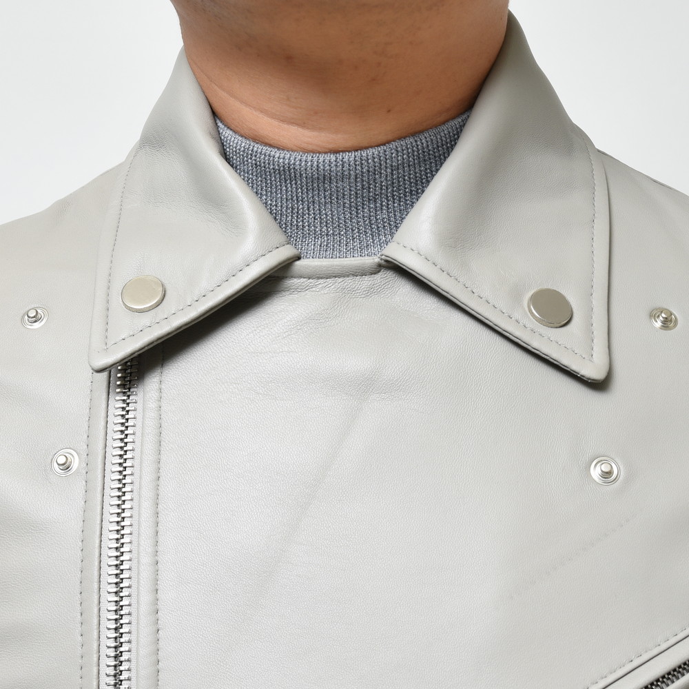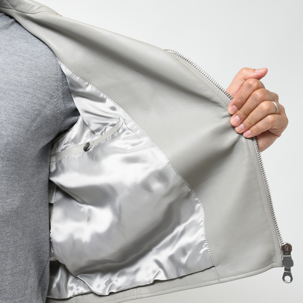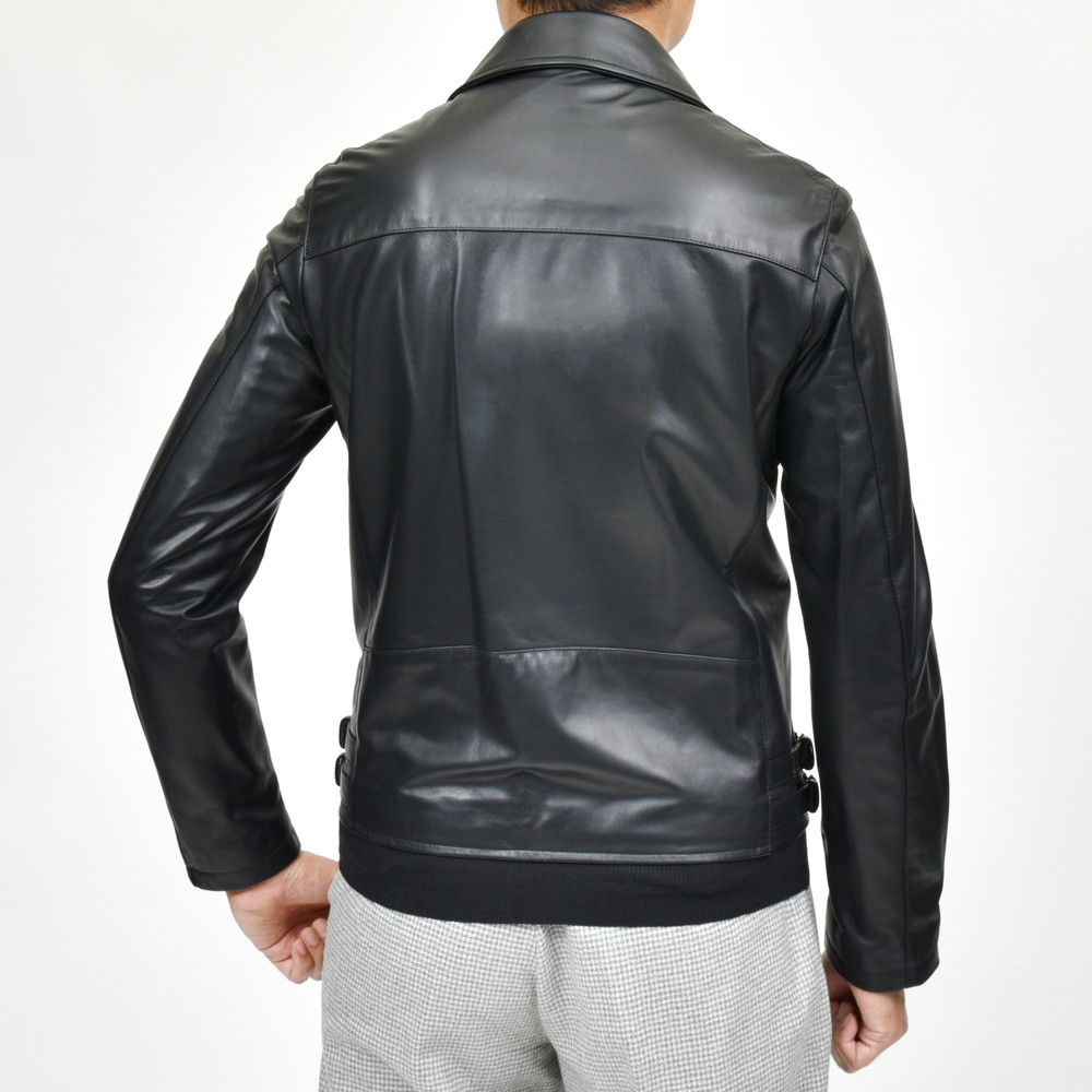 素材は通年着られる薄手のラムレザーでして、厚みは0.6mm。非常にしなやかで馴染みが良く、重さも感じないので着心地的にも◎であり、大人が無理なくスマートに着られるライダースといえるのではないでしょうか。