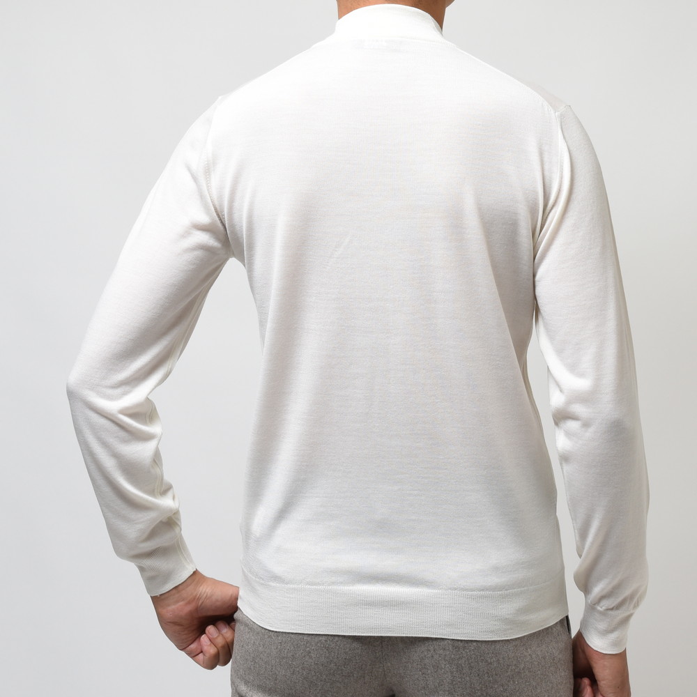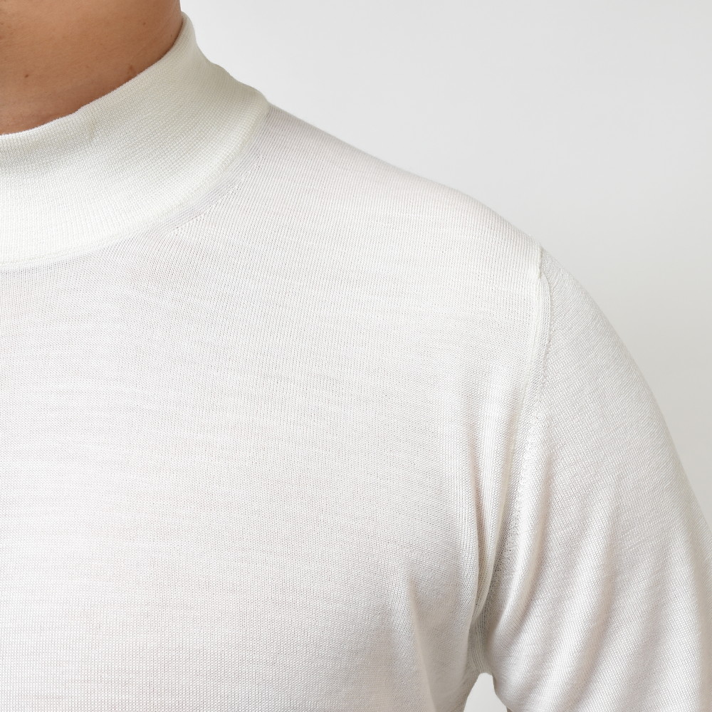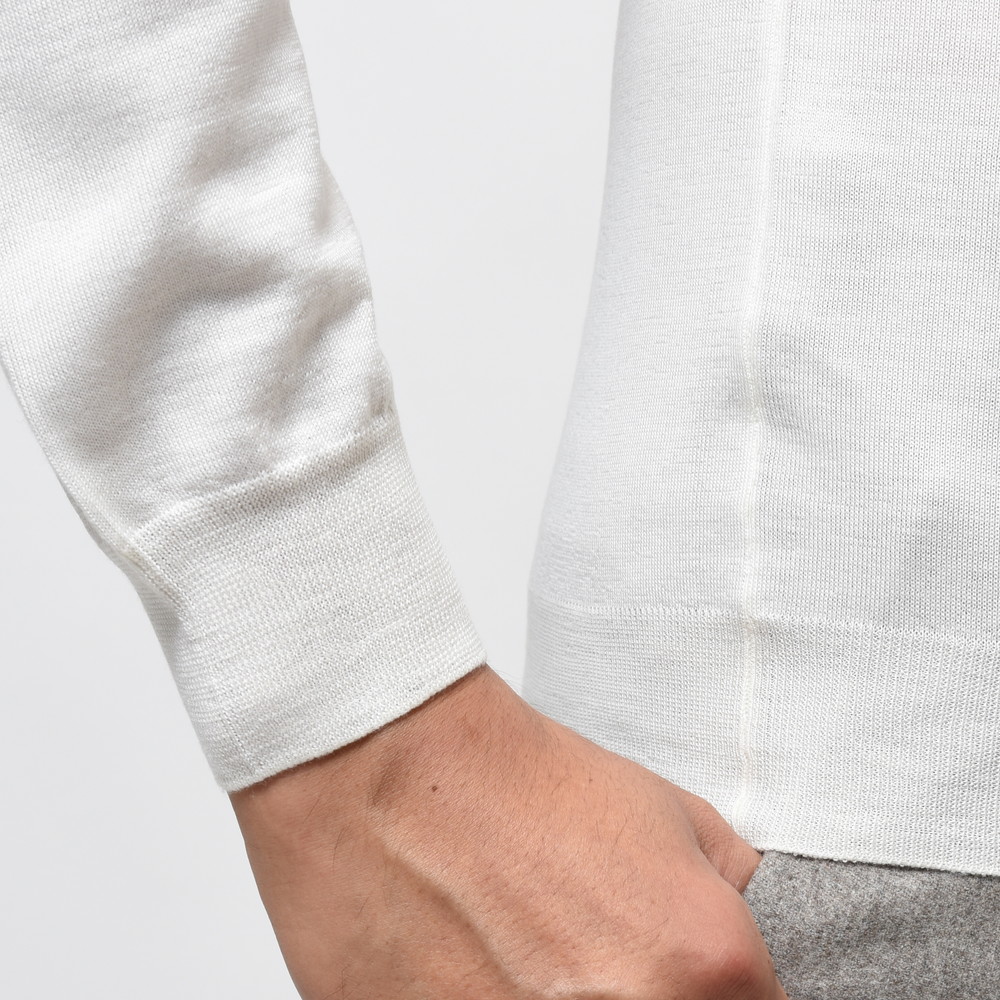 シルクやカシミアをミックスすることなく、純粋にウールのしなやかさと繊細さのみを突き詰めることで生み出されているアイテムでして、一度着るとそのサラリとしたタッチに間違いなく驚かれると思います。