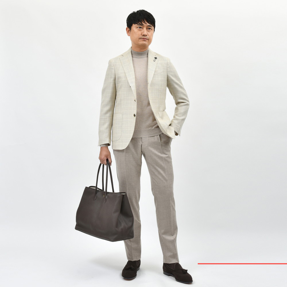 秋冬シーズン、タイドアップするのも良いですが、ハイゲージタートルやモックネックを合わせ、ウールパンツで引き締めるクリーンなスタイルがとても良い様に思います。