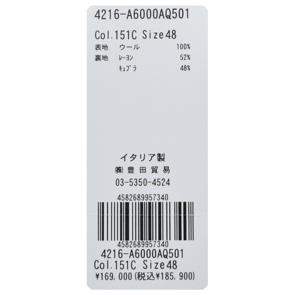 ・袖:袖アンフィニッシュド(本切羽・開き見せなどの釦付け修理が必要)