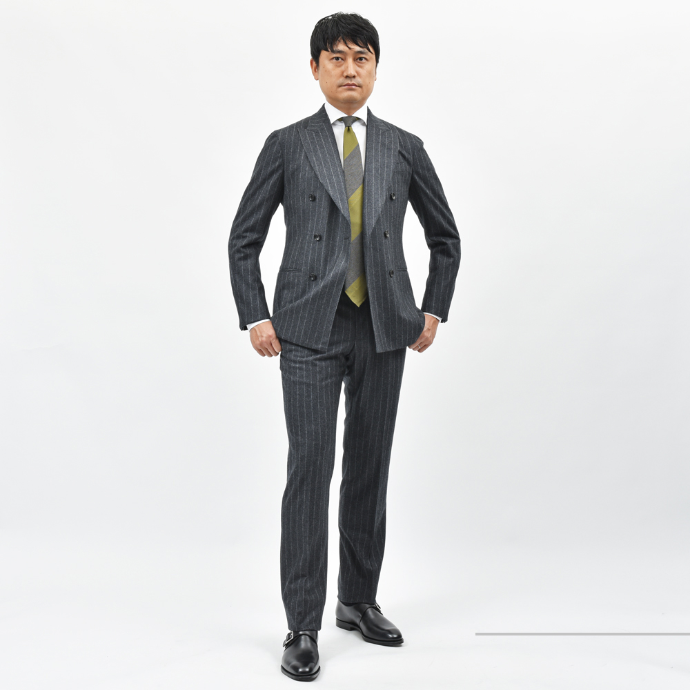 もちろん本格的なフルキャンバス仕立てなので、着心地の良さやバシッとキマる感じは、男の戦闘服としてこの上ないダブルスーツだと思います。