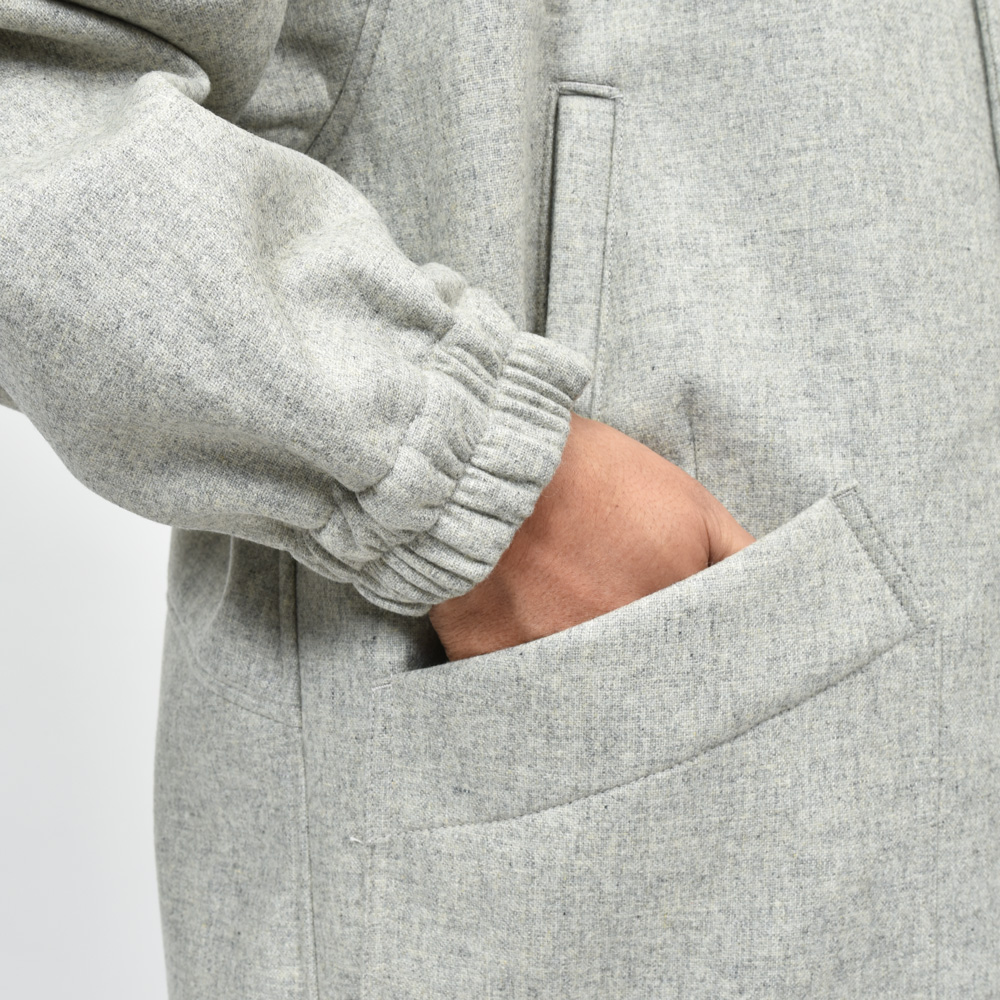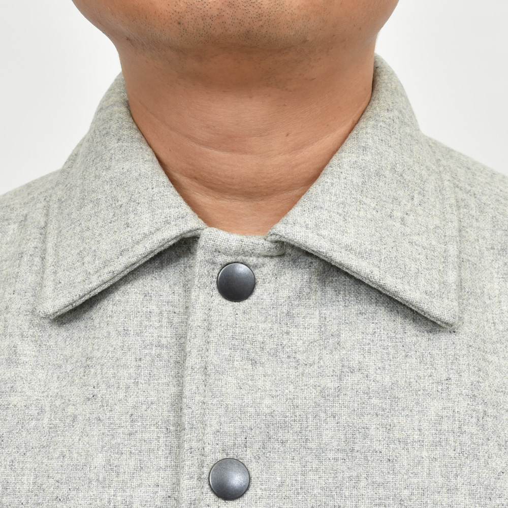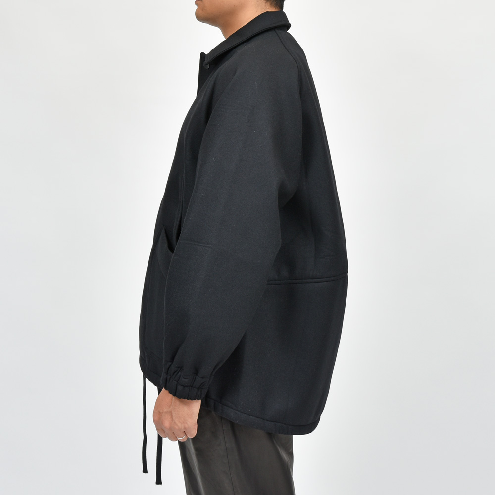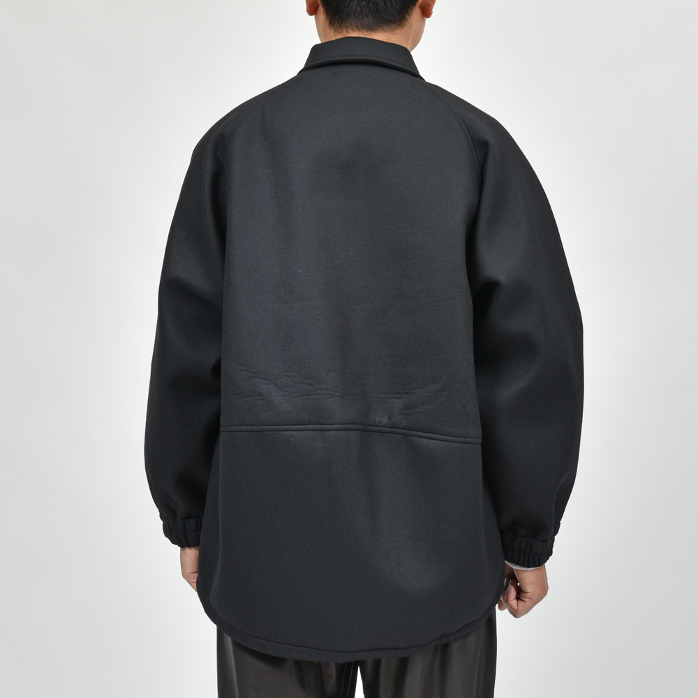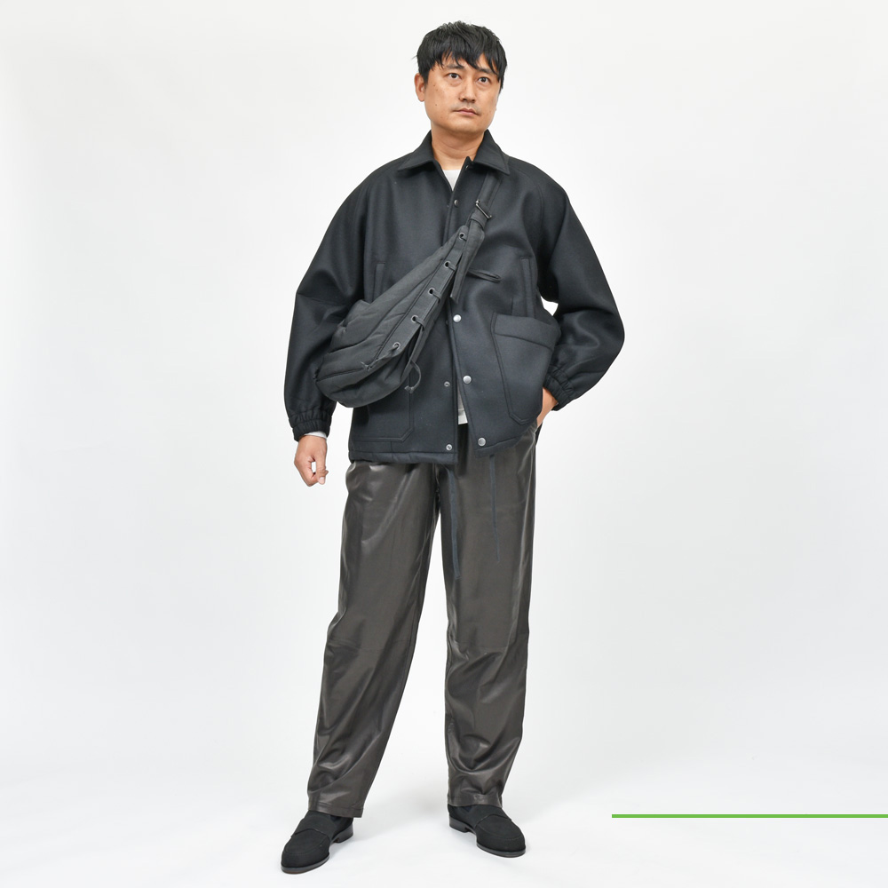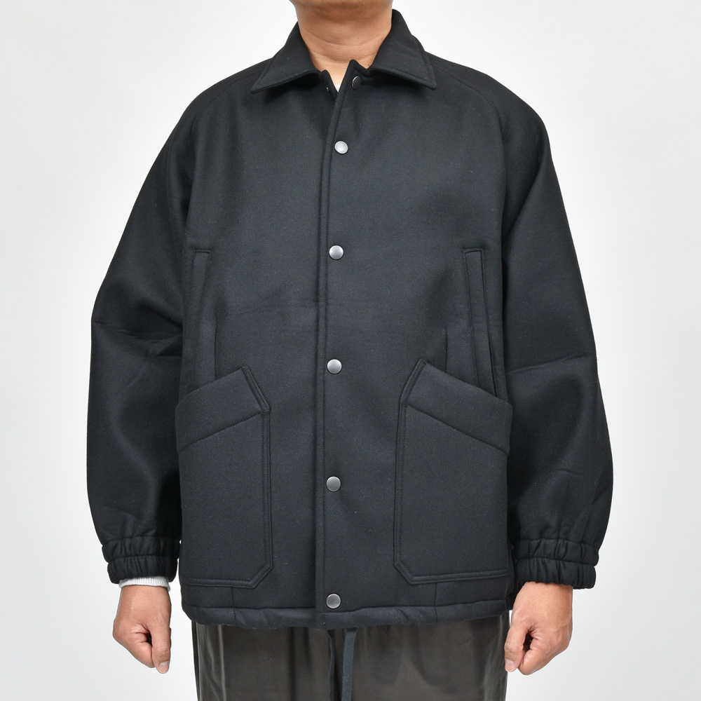 rdv o globe(ランデヴー オー グローブ)では定番的にリリースされるコーチジャケットデザインのアイテム、今回はウール素材に丸みを持たせたシルエットの一着になっていましてらしさ溢れるものになっています。