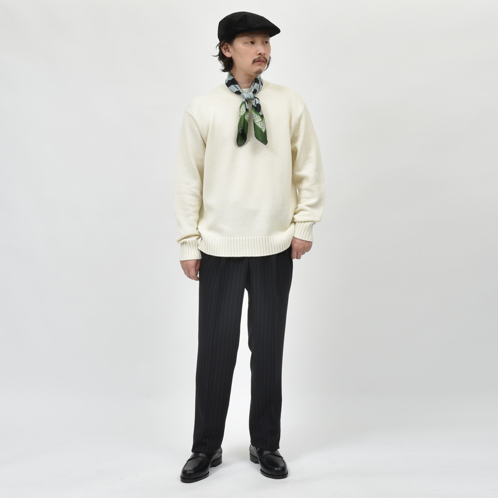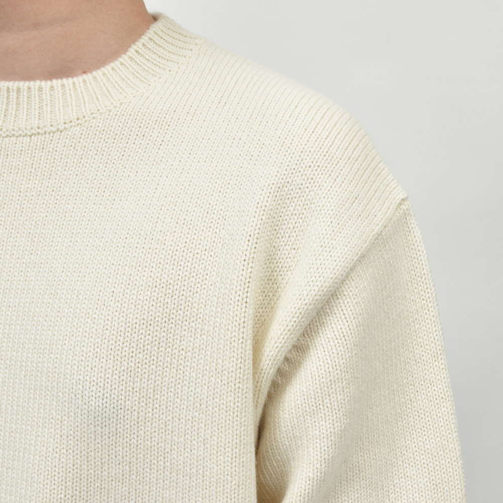 ミドルゲージの程よいリラックス感を持ち合わせたニットになっています。シンプルゆえにクオリティの高さがストレートに伝わってくるタイプのニットですね。