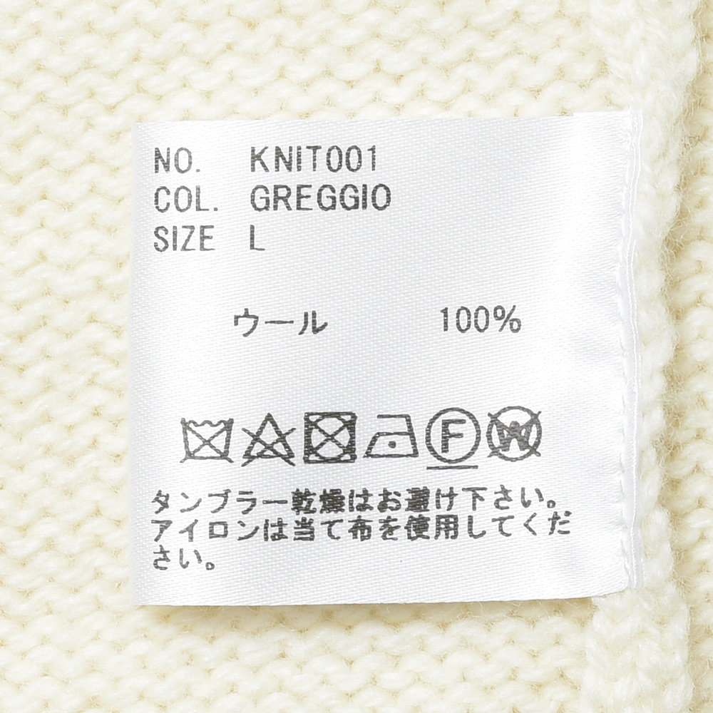 糸にもこだわっており、イタリアから取り寄せたSUPER100'sヤーンを使用、ボディはプレーンな平編み、ネックはゲージを変え一枚着として存在感が出るように仕上げられています。