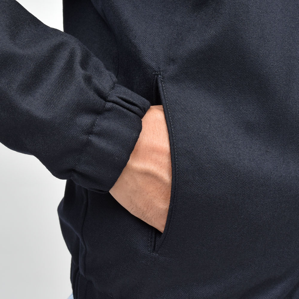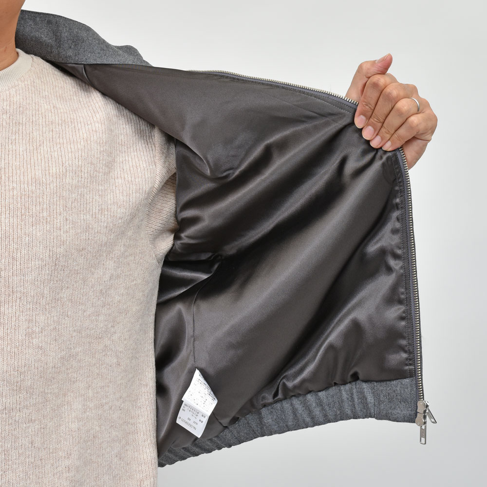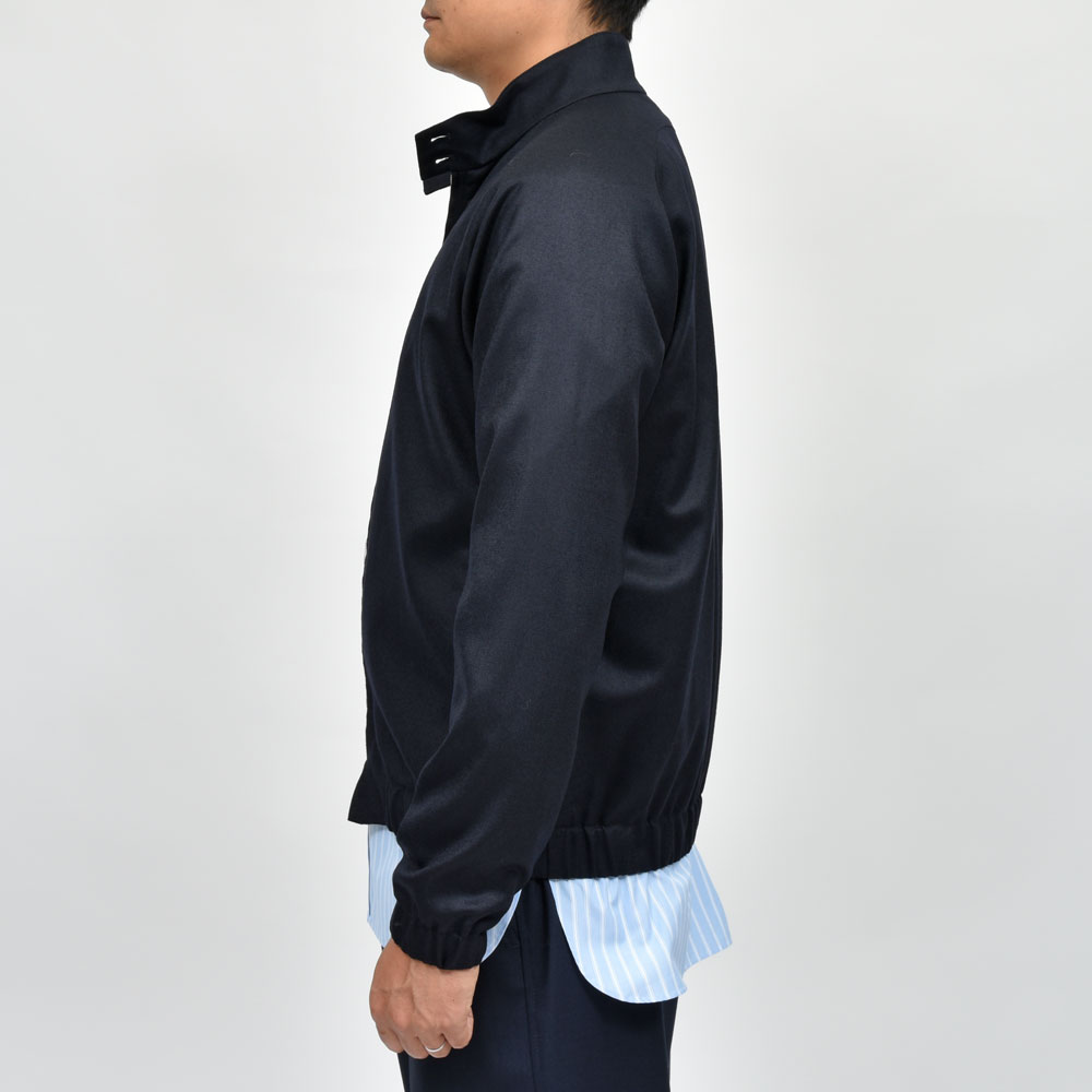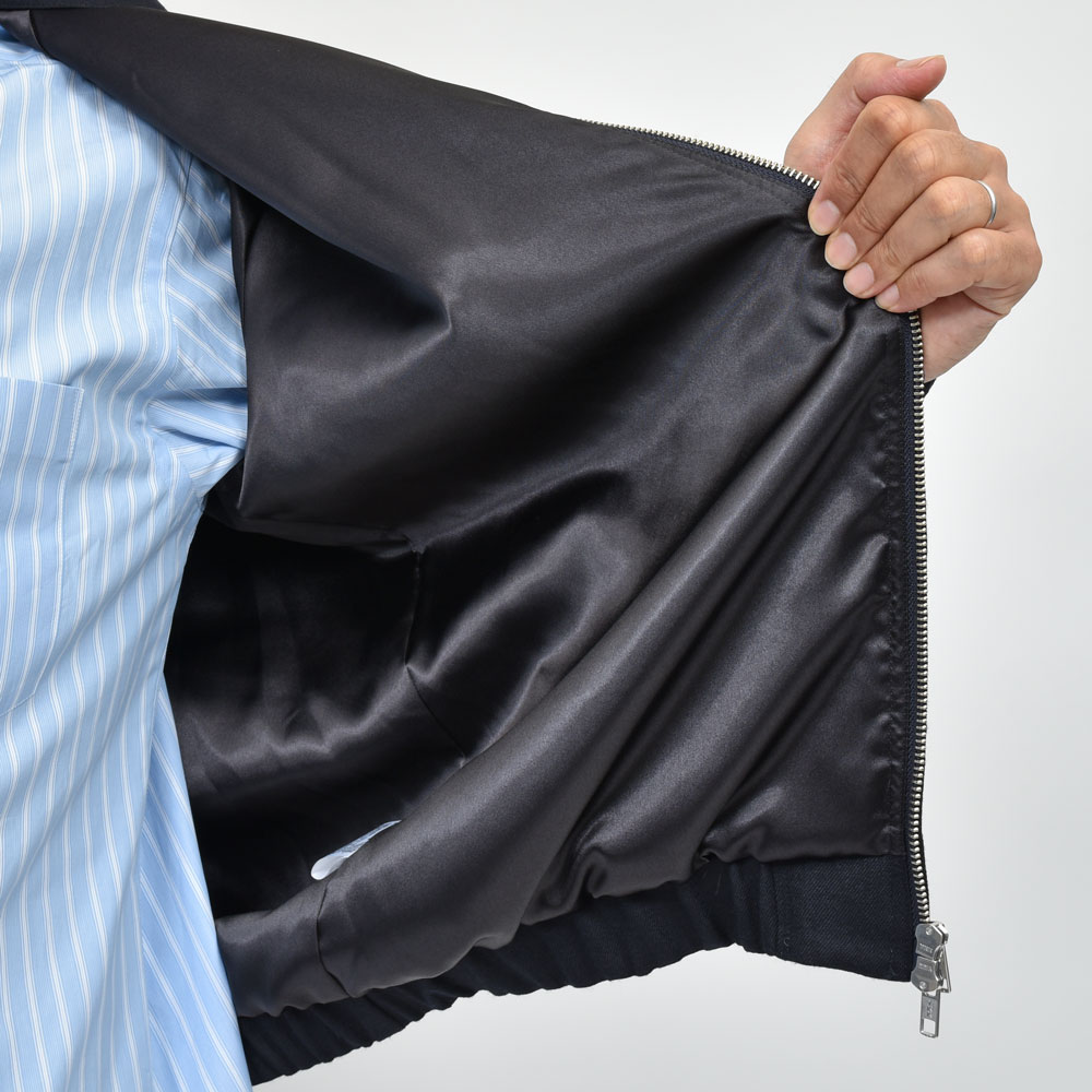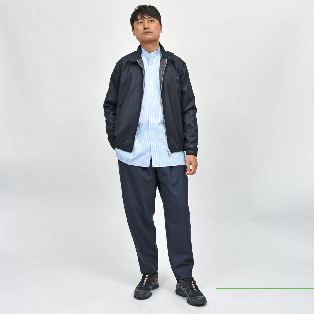 いわゆるコレ系のブルゾンはコットンのツイルやギャバジン的な素材を用いるのがベーシックですが、上品さとストリート性、大人が気軽に着られるクリーンさを・・・と考えると何かしらのウール系生地を選びたいところ。