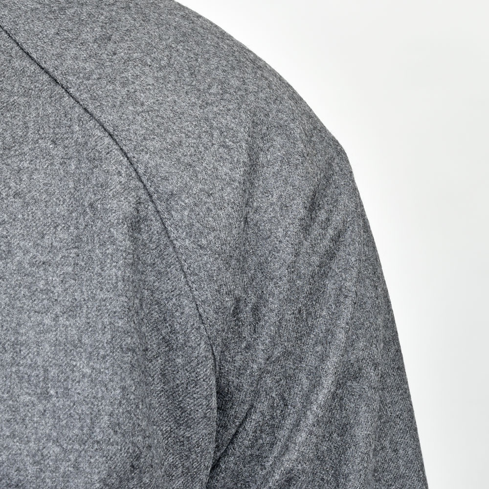 シルエットは程よく細すぎず太すぎず、トレンドに流されないような形に。またラグランにはせず、セットインに近しいカッティングにすることでスポーティに見えすぎないようにしています。