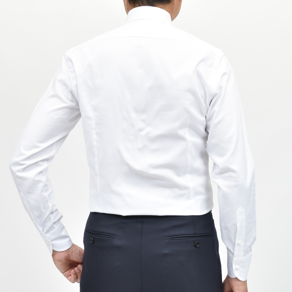 程よい襟の開き具合と、大きすぎず小さすぎない襟羽根はイタリアらしさをしっかり漂わせる上品なバランスで、ネクタイを結んだ時の締まり具合も絶妙ですね。