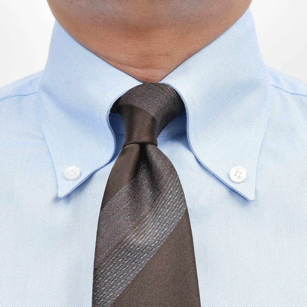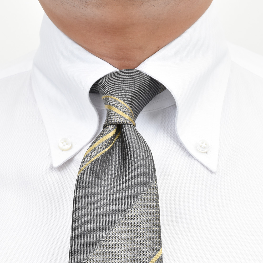 普通にネクタイを締めて東海岸風に上品でさりげない感じで着るも良し、フィアット元会長にして希代のファッショニスタであるジャンニ・アニェッリ氏のように襟先のボタンを外してネクタイを締めるも良し。