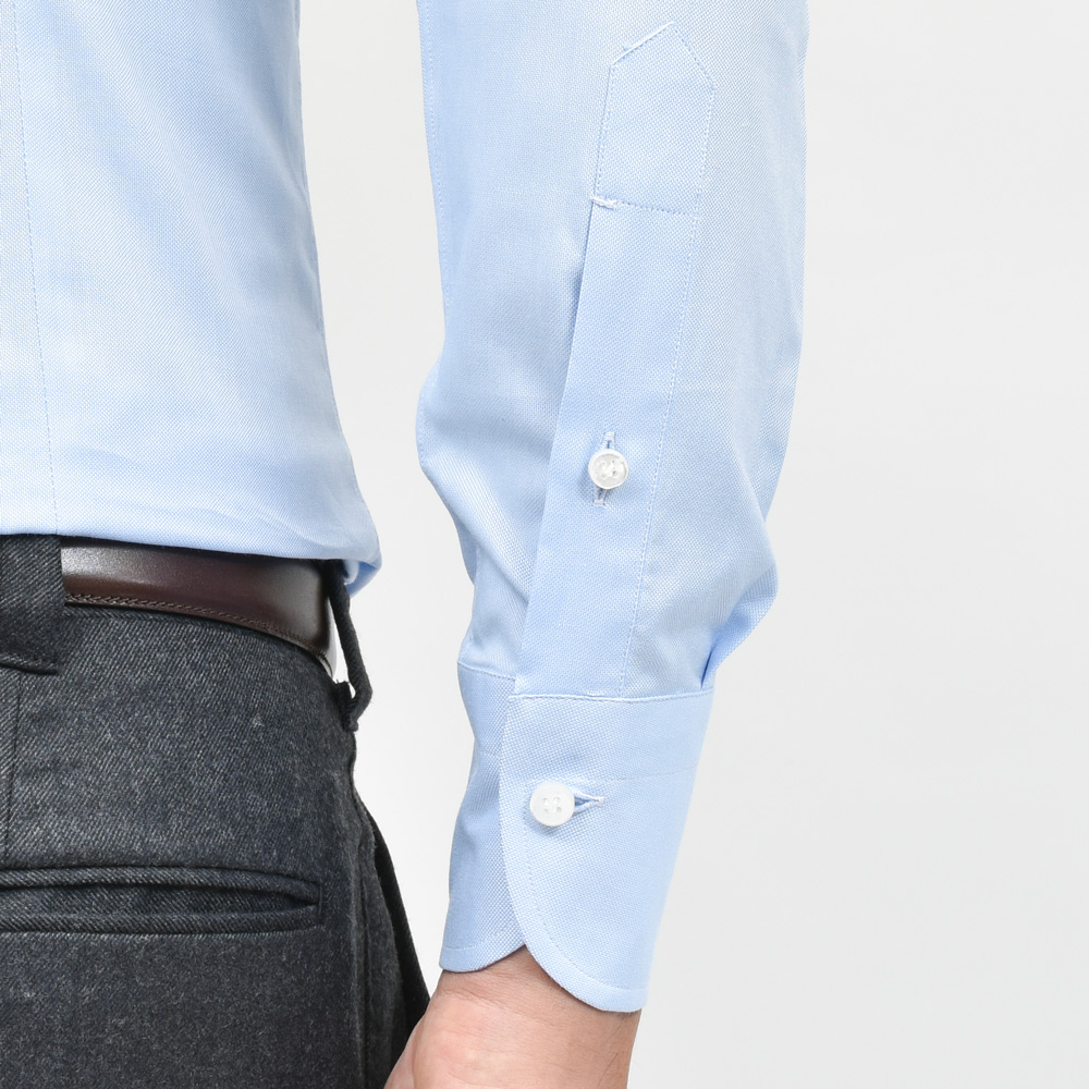 こちらのシャツは袖付けのまつり縫い、ボタン、ガゼット、剣ボロのかん抜きの4箇所がハンド工程(手作業)となっており、機械では再現しづらい微細なディティールへのこだわりがあります。