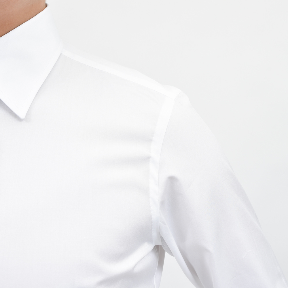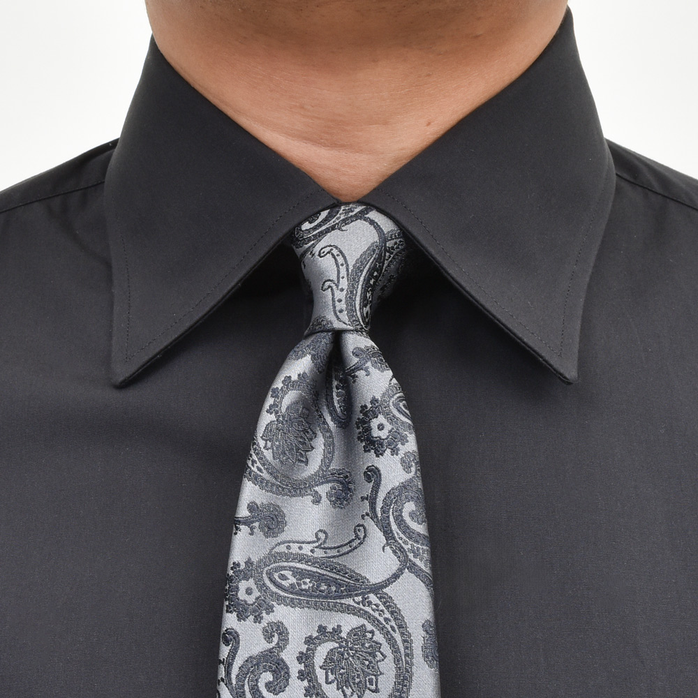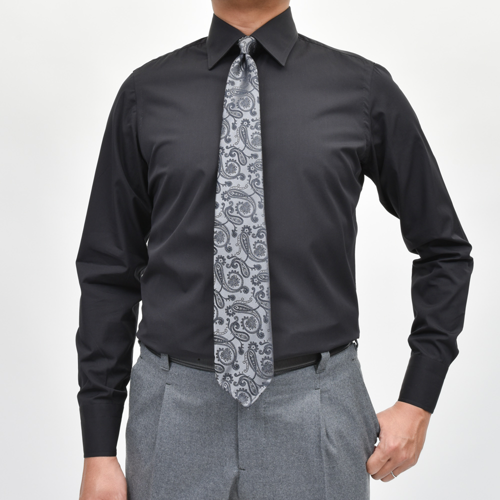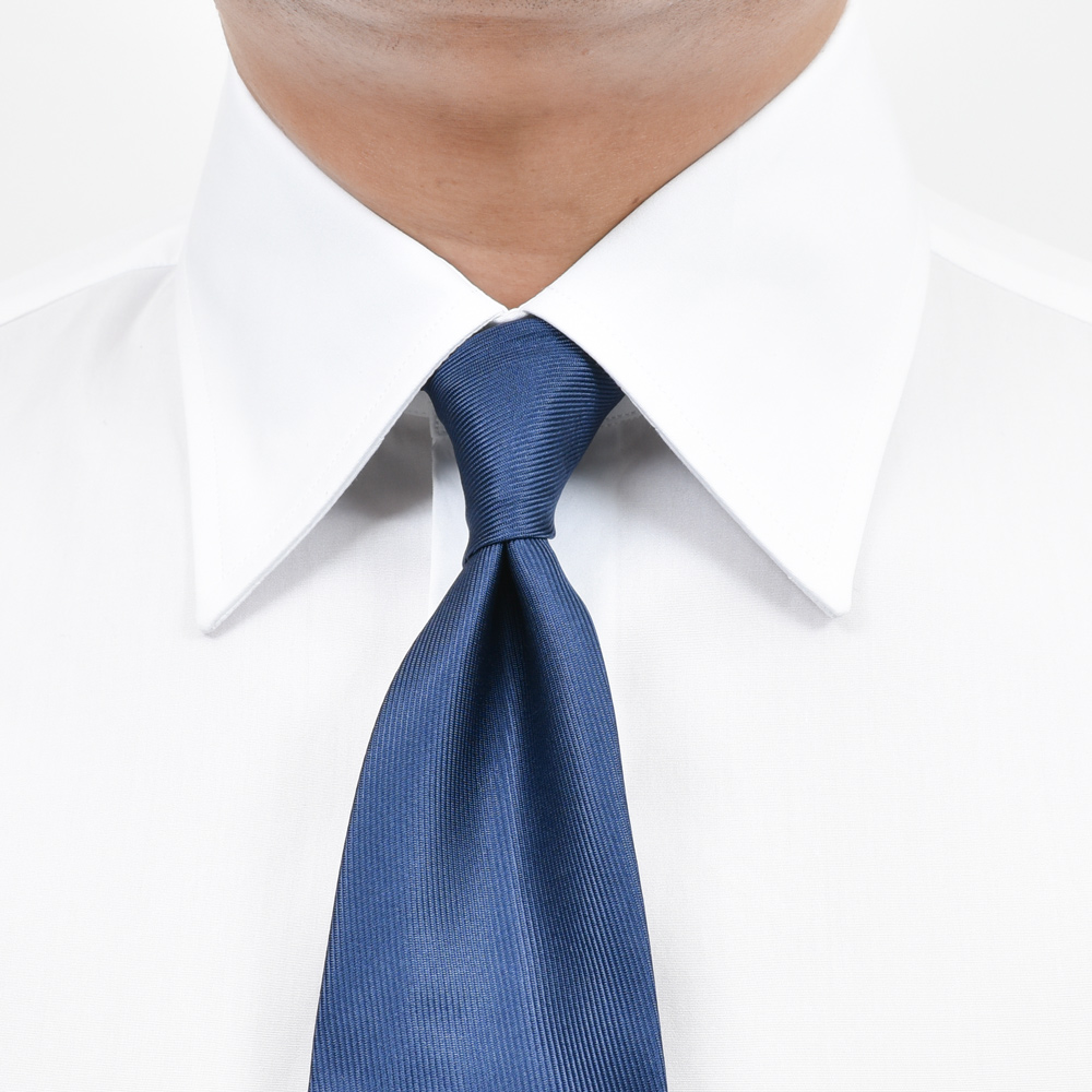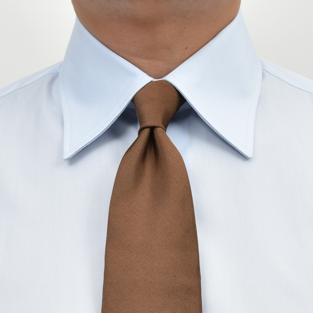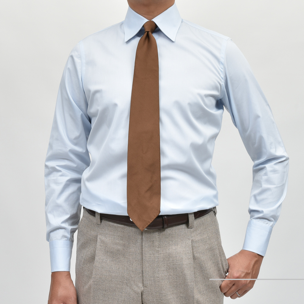 レギュラーカラーはコンパクトなノット(結び目)のネクタイとも相性が良く、誠実さを感じるVゾーン、端正な見た目に仕上がります。