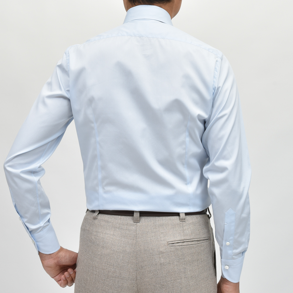 非常に滑らかな生地感とレギュラーカラーが特徴のドレスシャツ。イタリアのスタイルを好む方にとっては新鮮に写るんではないでしょうか。