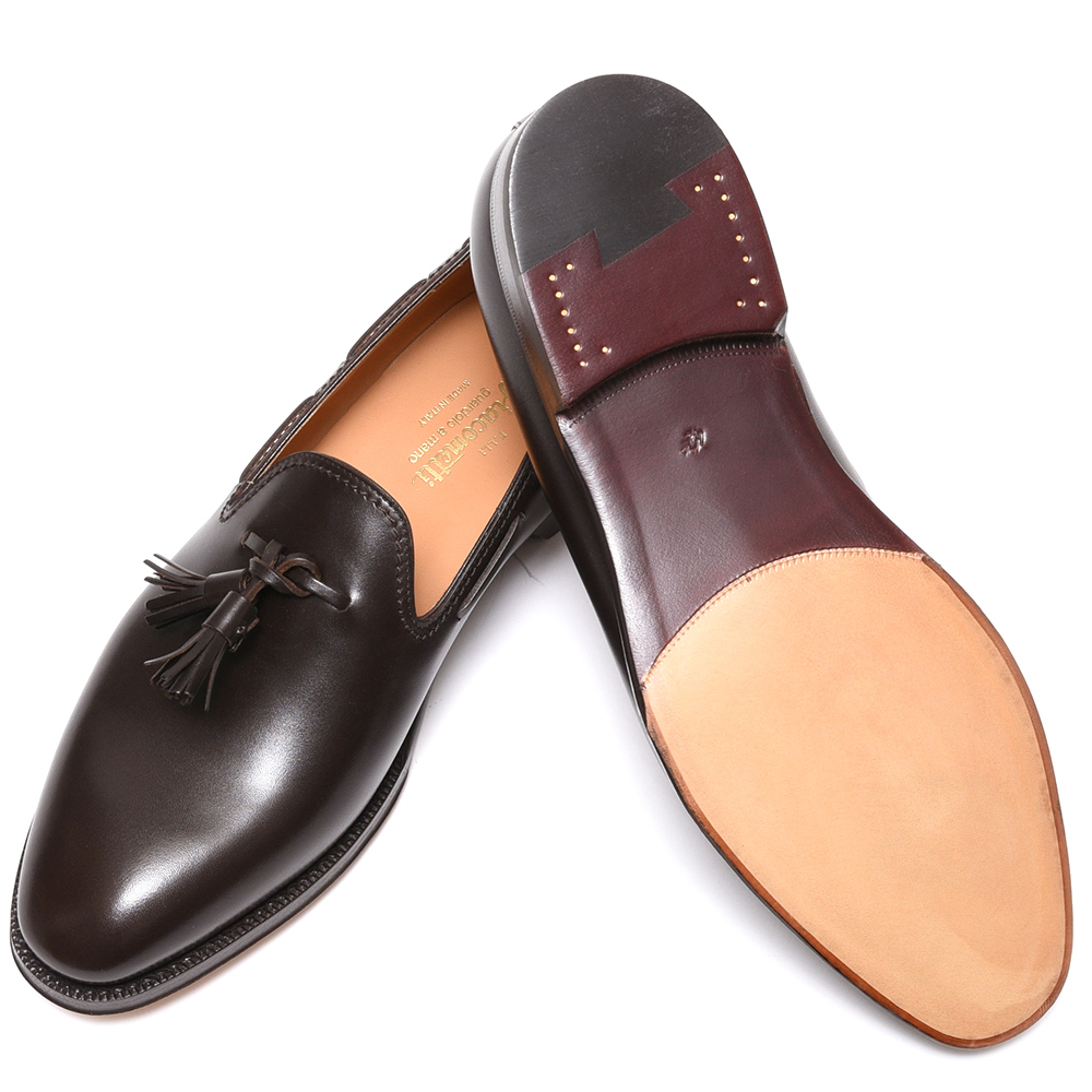 ワンピースタイプのプレーントゥで非常に滑らかな曲線を描くわけですが、程良くシェイプされているので凄くシャープな見え方になっています。トゥのフォルム、タッセルのボリューム感、レザーの美しさ、仕立ての丁寧さ全てがイタリア最高レベルだと思います。