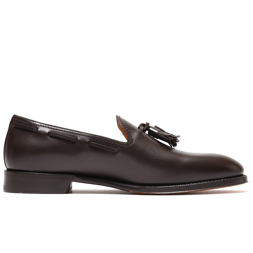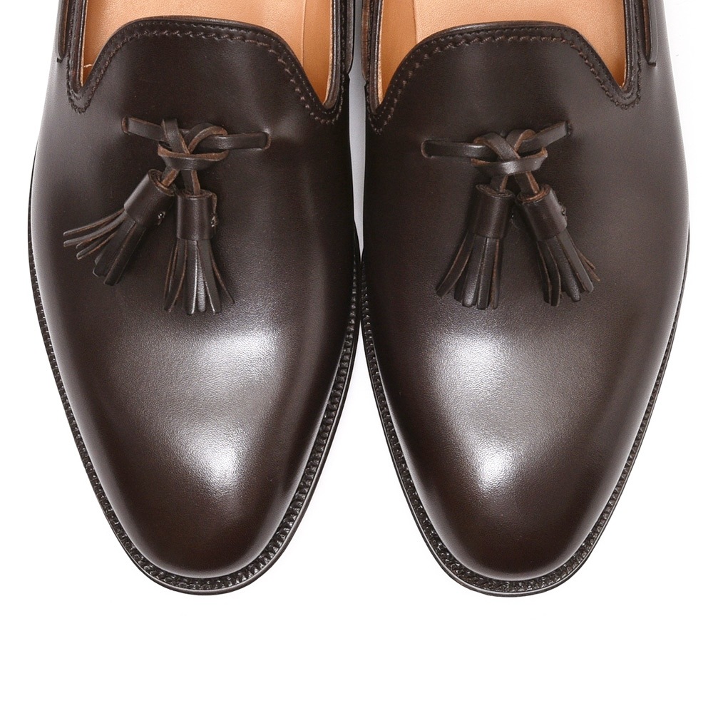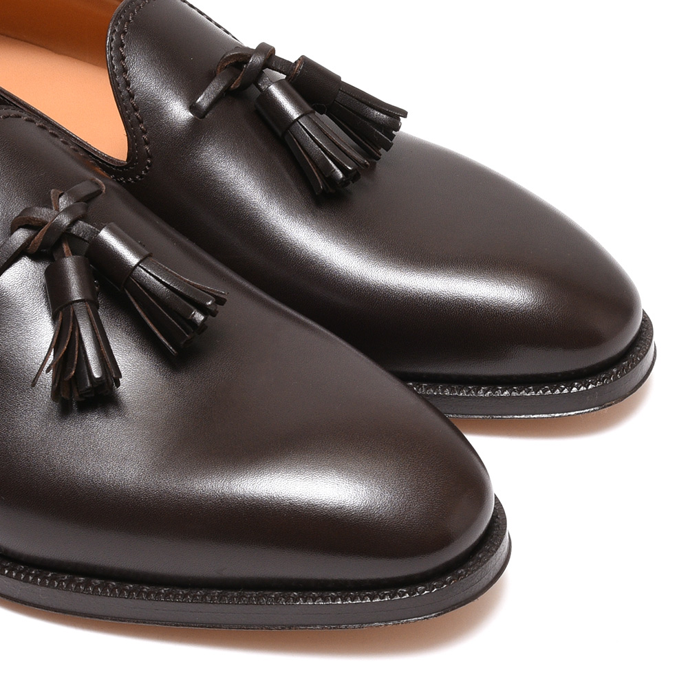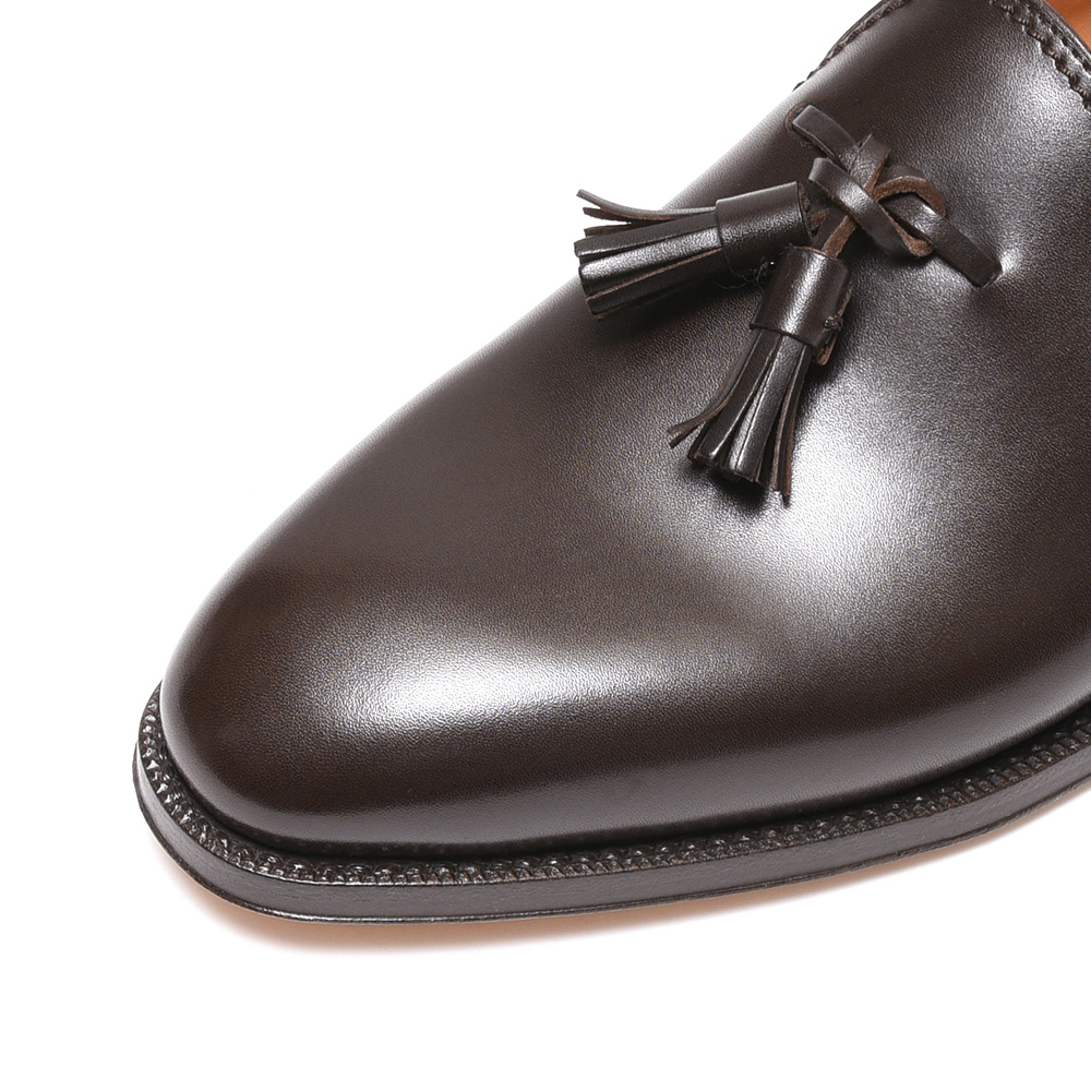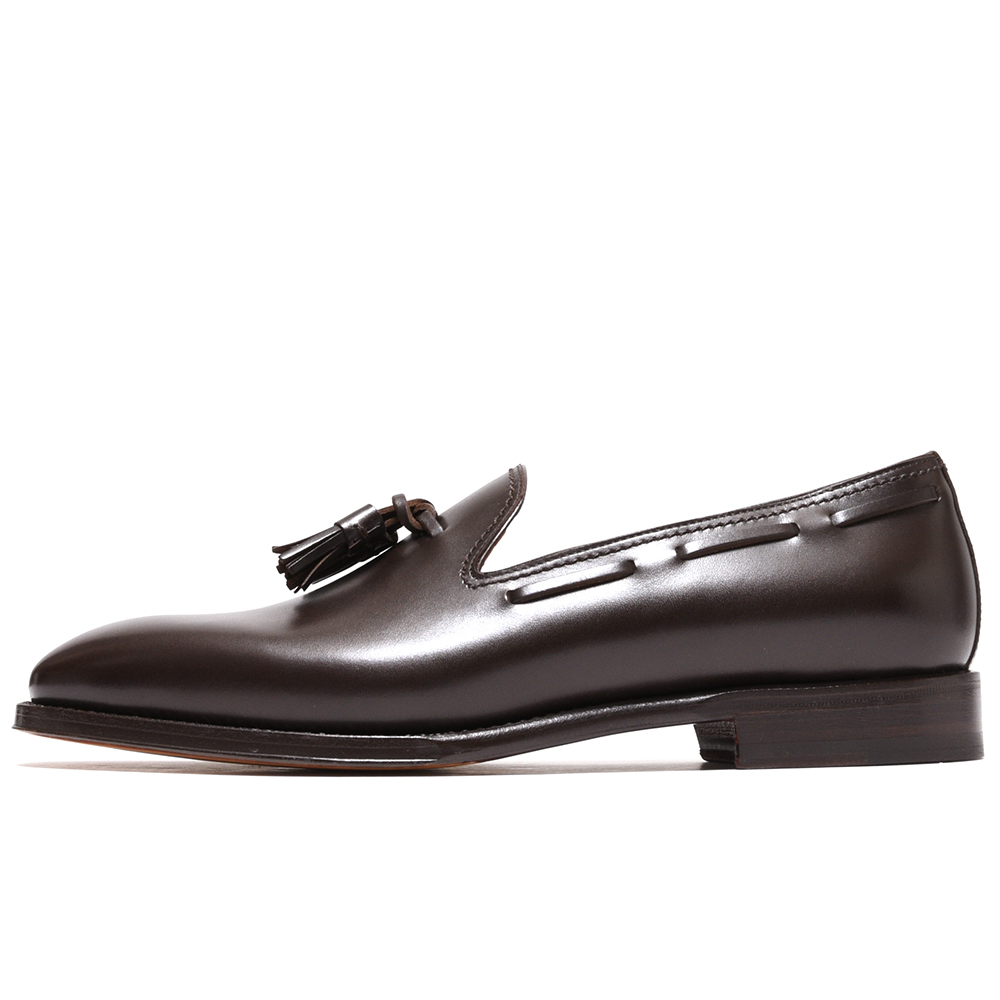 アッパーは上質なカーフをワンピースで成型し、タッセルをセット。