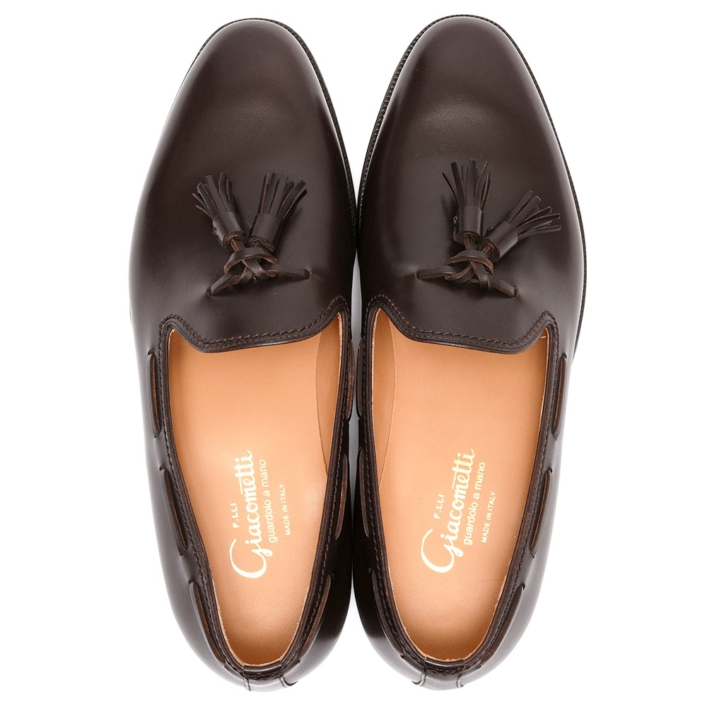 salottoの定番タッセルとしてご用意しているF.LLI GiacomettiのFG421はややシャープなノーズが印象的な、とてもクリーンで上品な一足です。