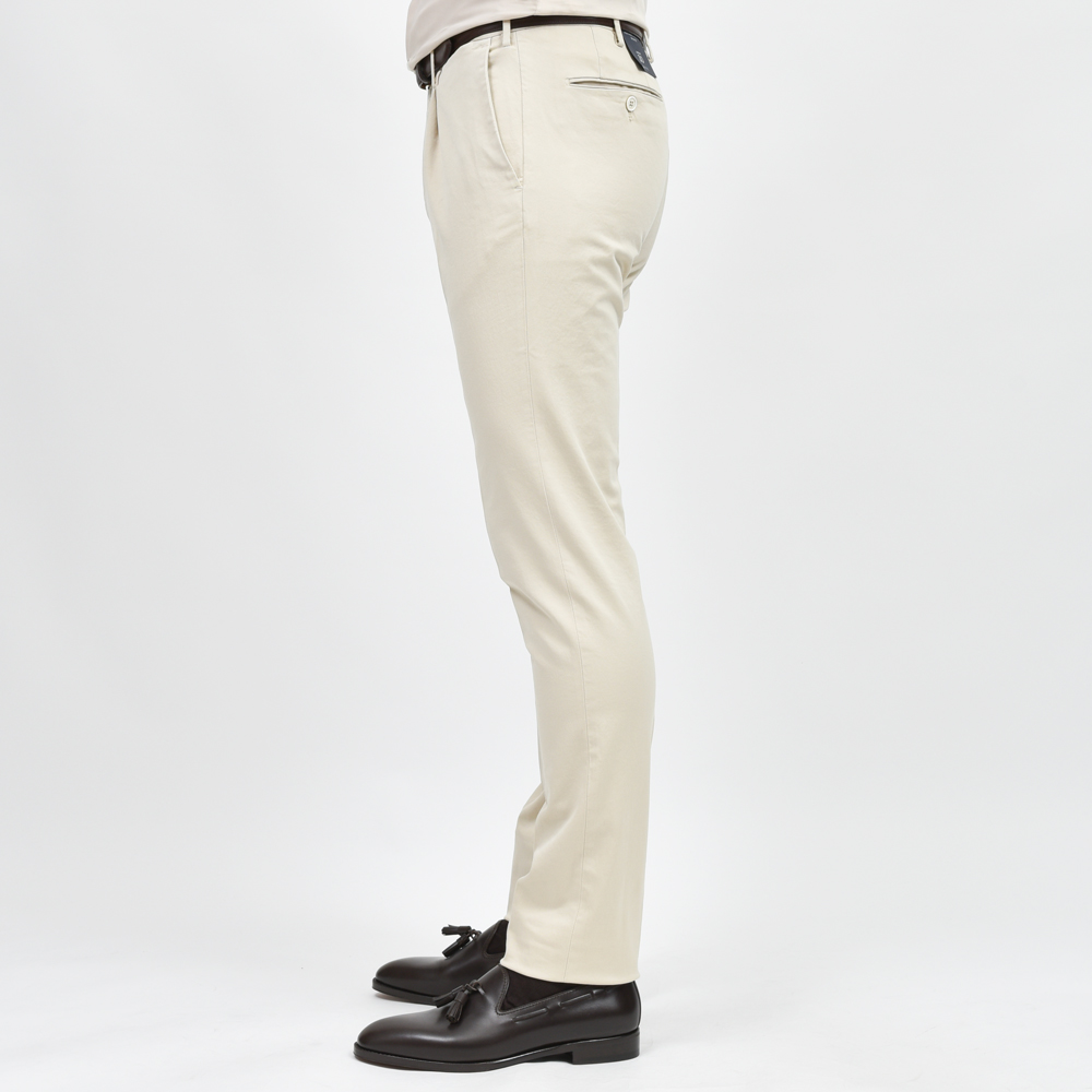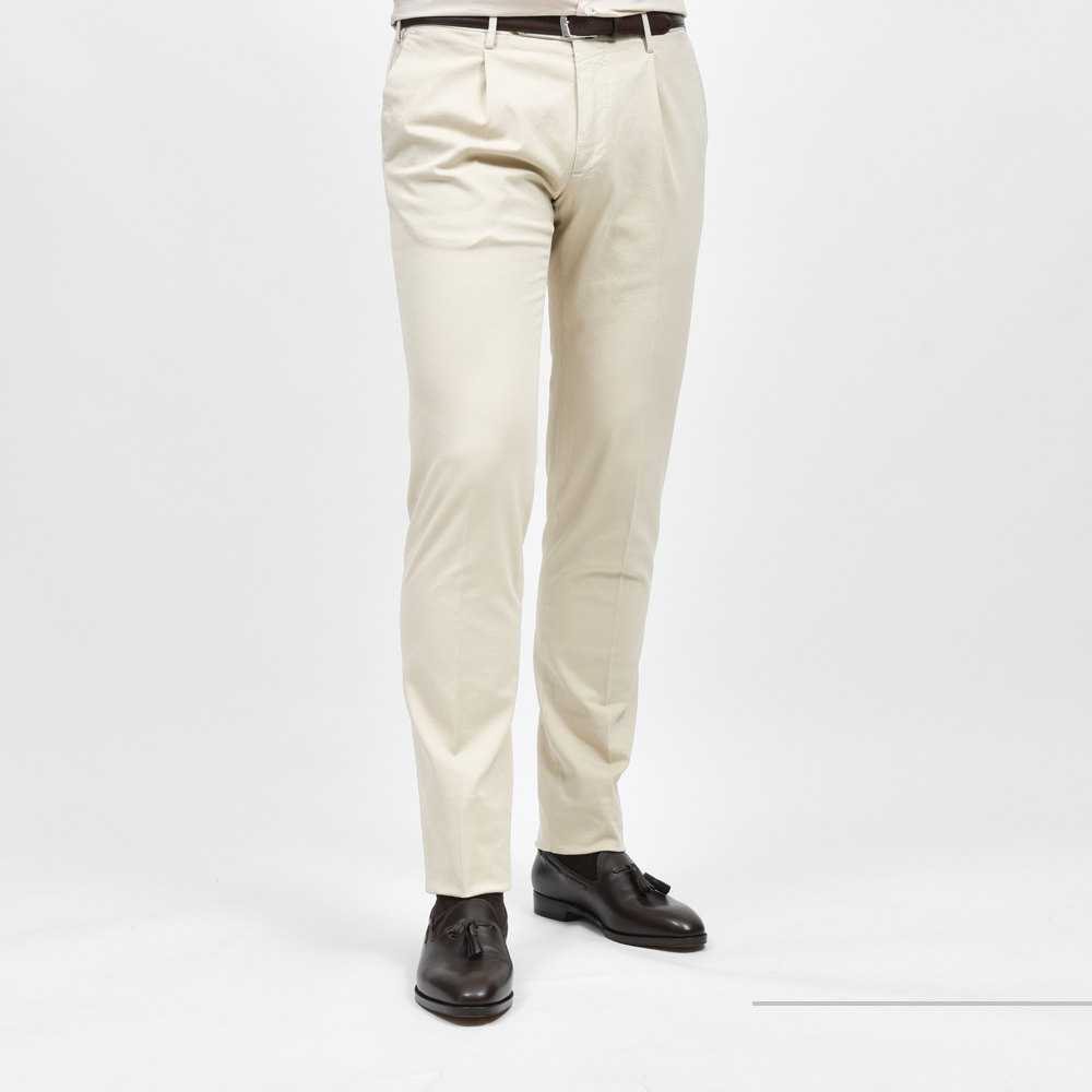 ドレススタイルにカジュアルな要素を取り入れる方法の一つに、いわゆるチノパンを合わせることがありますが、INCOTEXだからこそのシルエットがドレス度を損なわずに合わせることができます。