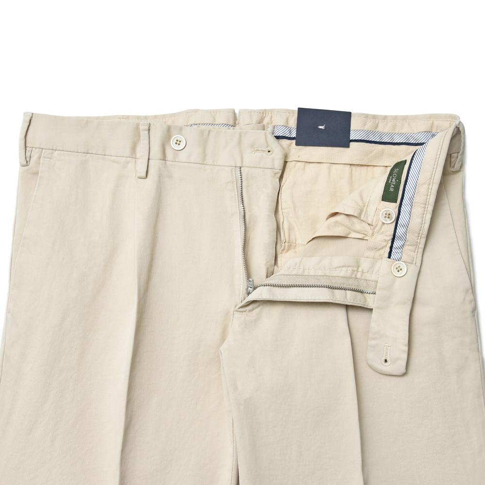 INCOTEXの美麗なシルエットはそのままに、ファブリックは製品染め(ガーメントダイ)されたコットンチノクロスが用いられています。