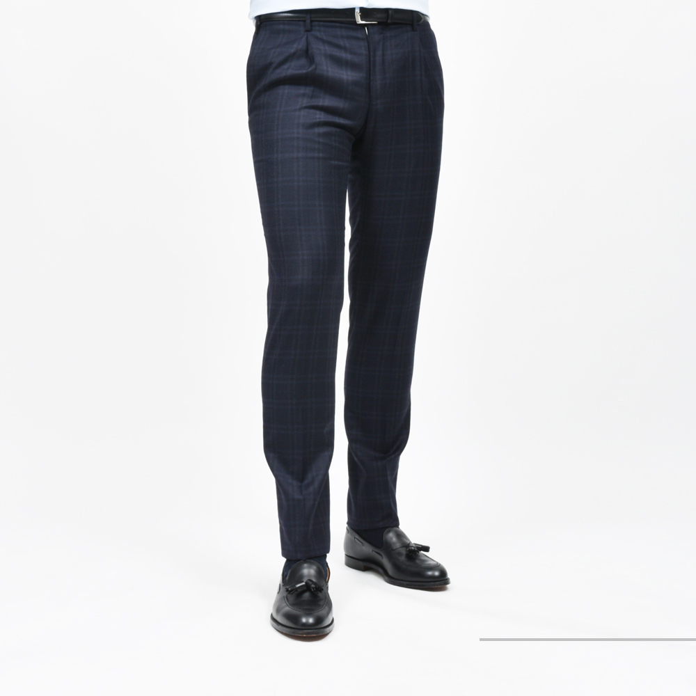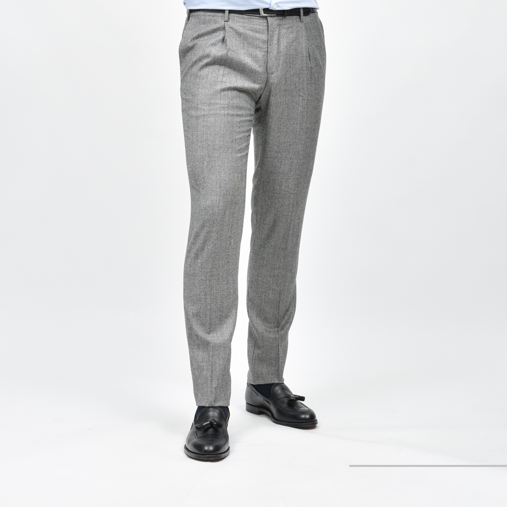 INCOTEX(インコテックス)のウールサキソニー生地のチェック1アウトプリーツテーパードパンツ。