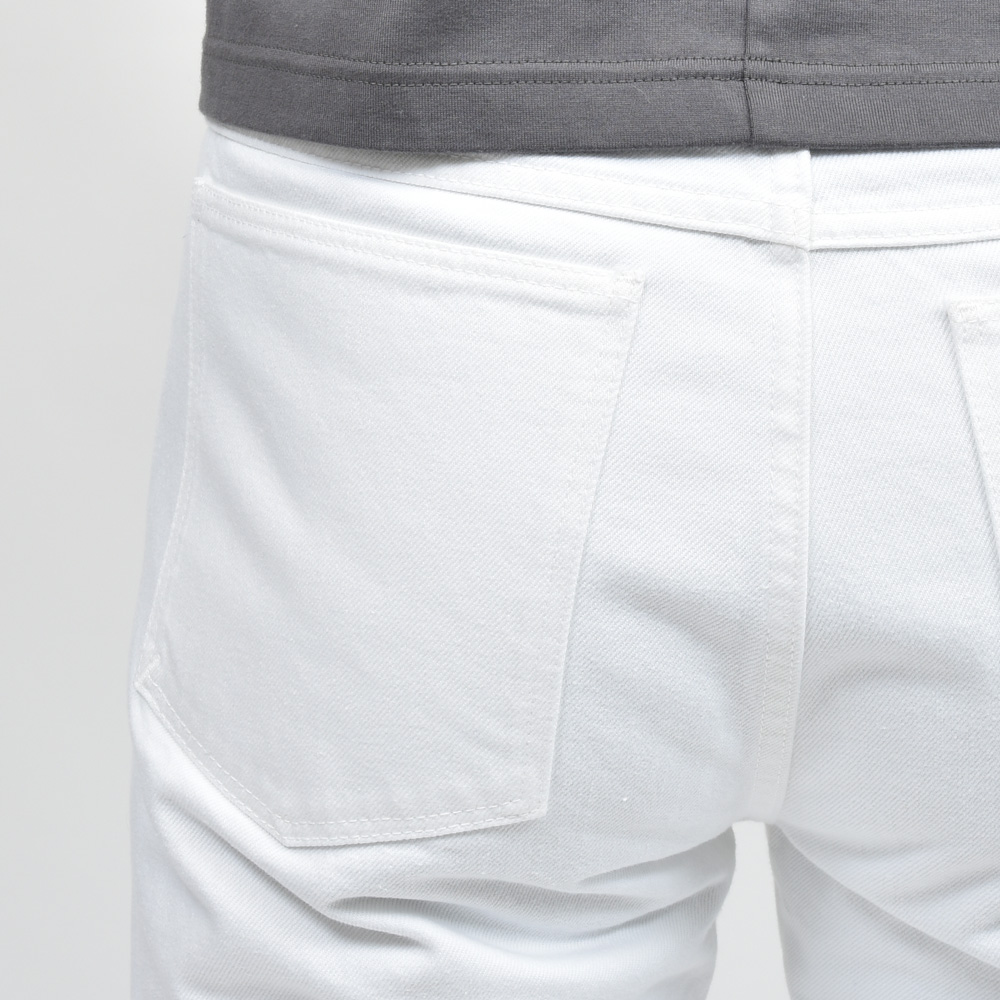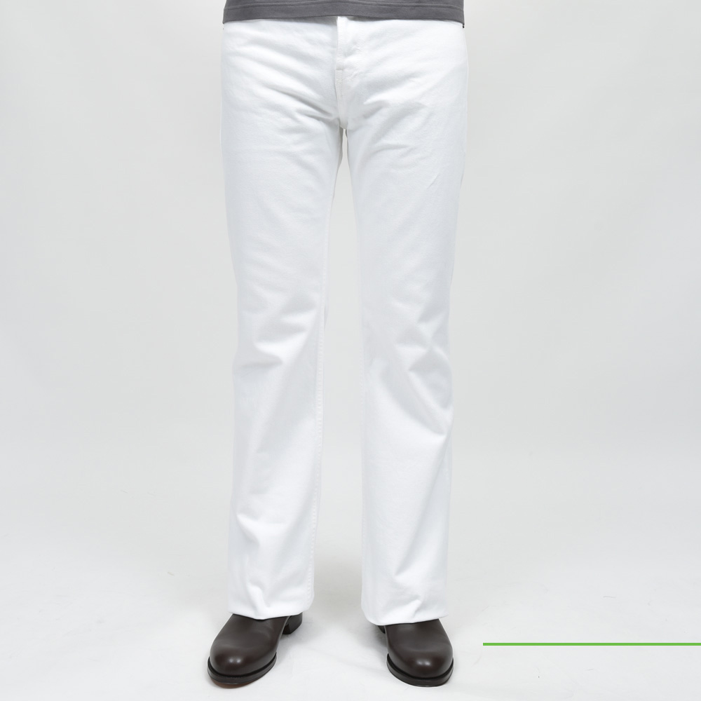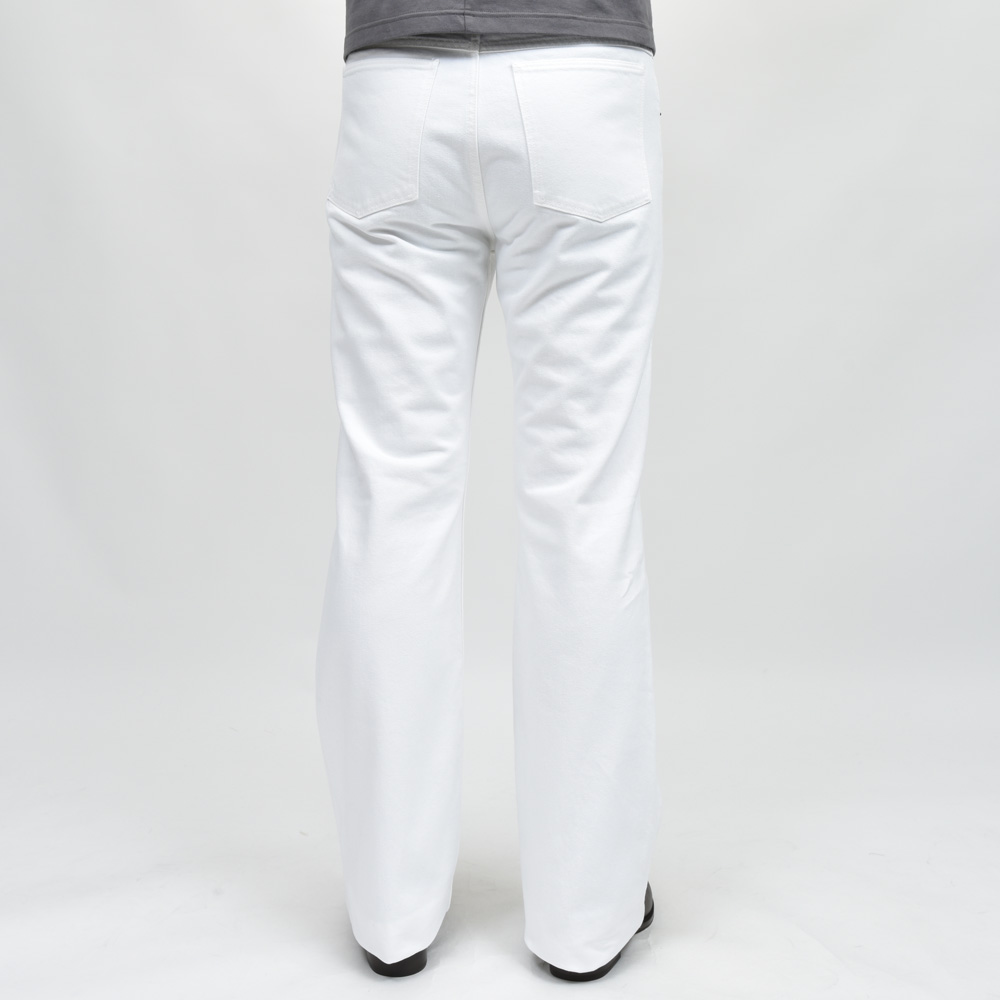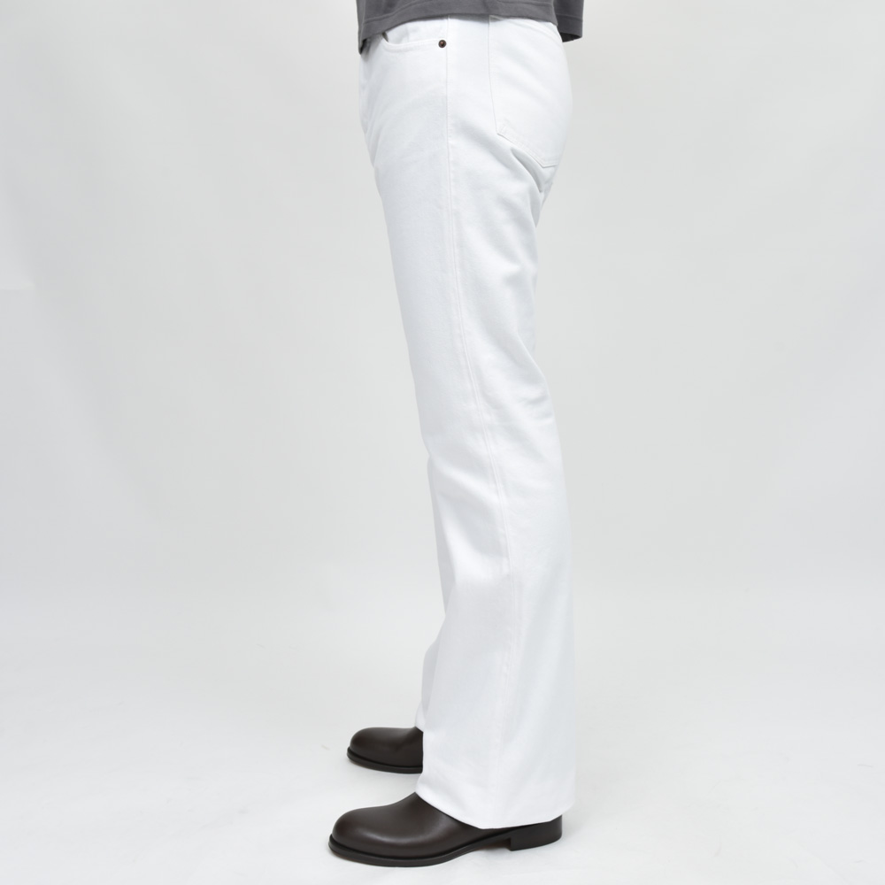 ピュアホワイトのフレアデニム、メンズではあまり見かけないタイプ。パンツ自体のディテールは気を衒わず、シルエットで勝負する感じの一本ですね。