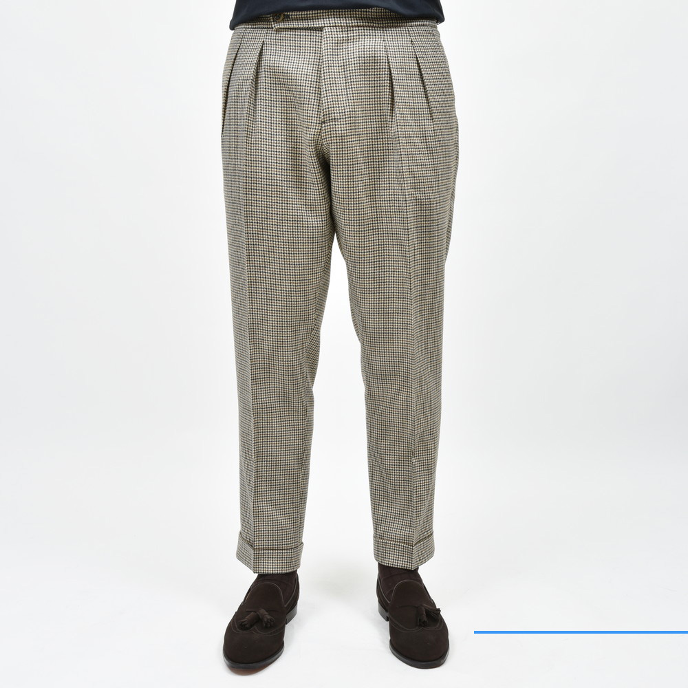 SCOTCHスコッチ ウールサキソニーガンクラブチェック2インプリーツテーパードクロップドパンツ CA1034 13042600039