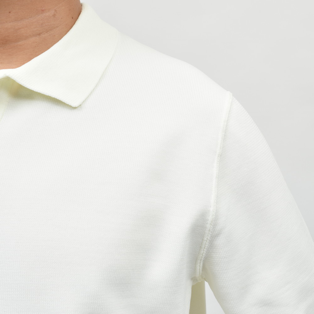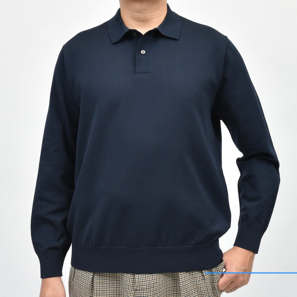 巷ではニットポロといえばハイゲージのものが多いですが、いざミドルゲージで織られてみると「これは使えるやつ」と思わず唸るほどの出来栄えに。