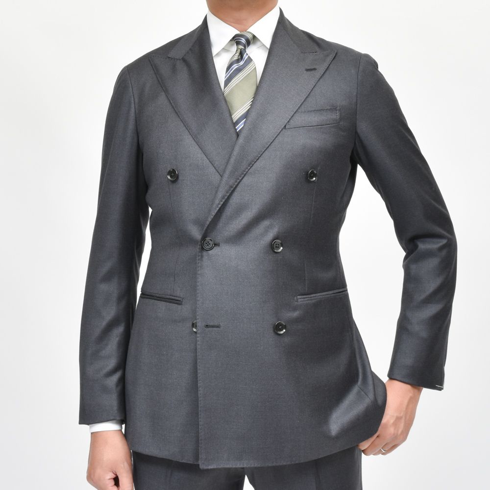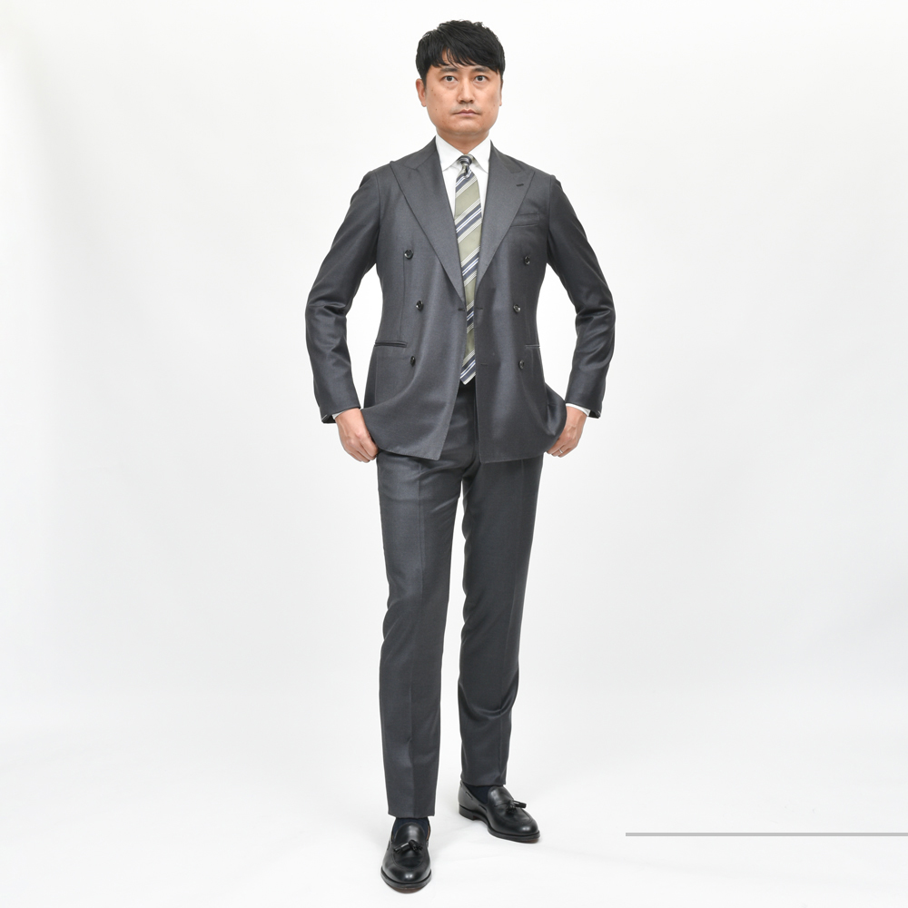 着丈やラペルのバランスなど、こだわり抜いたダブルブレストスーツを是非とも新定番生地でお楽しみ下さいませ。
