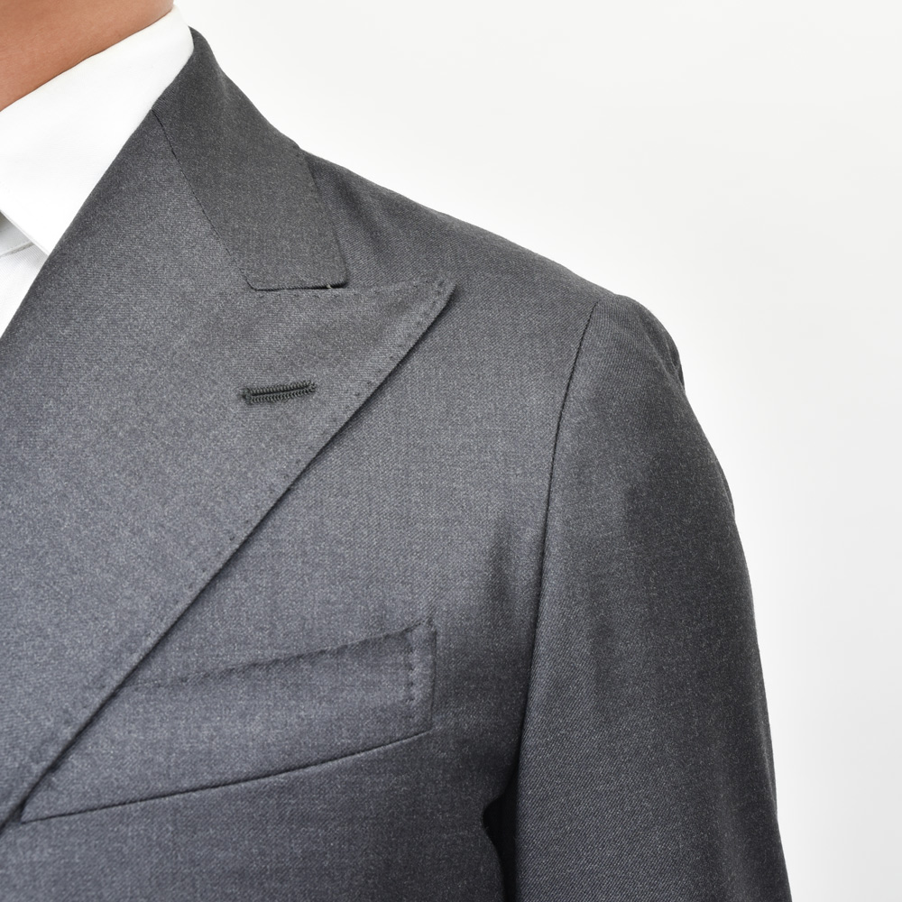 ファブリックはLoroPiana社SUPER130's“365”。名前のとおり、365日(1年間)を通して着用できるようなしなやかさと丈夫さを兼ね備え、上品な光沢感と程良いウェイト感がある特別なファブリックです。