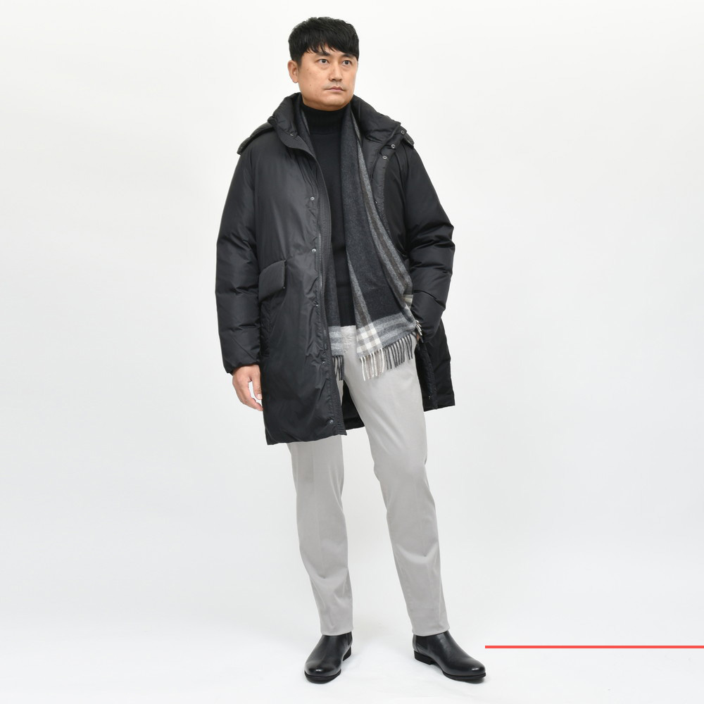 ナイロン素材ですがすっきりと上品に見せることが出来るので、タイドアップスタイルの妨げにならず、しっかり防寒しつつエレガントに見せることが可能です。